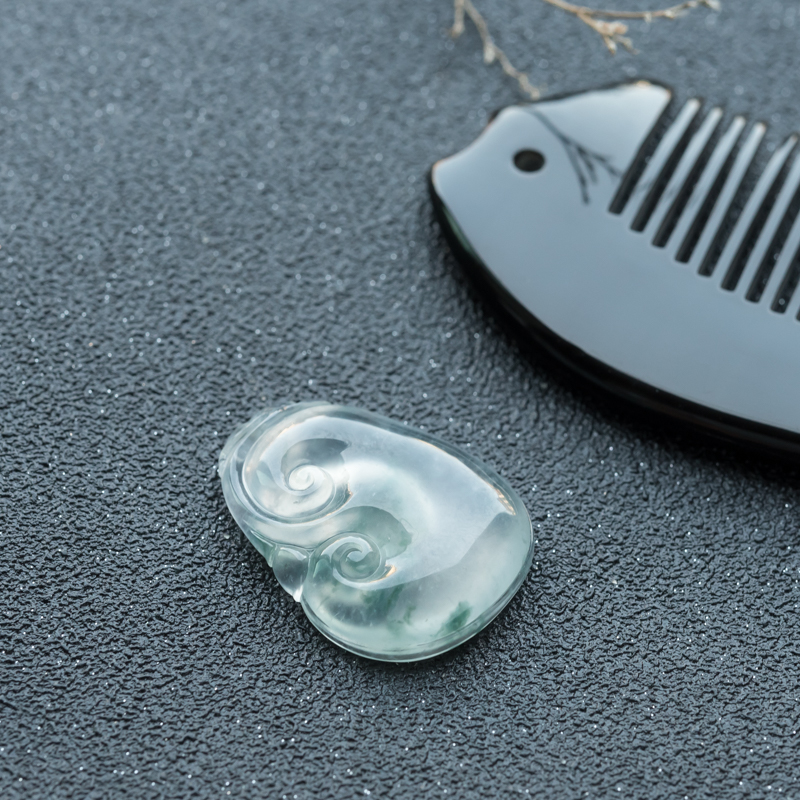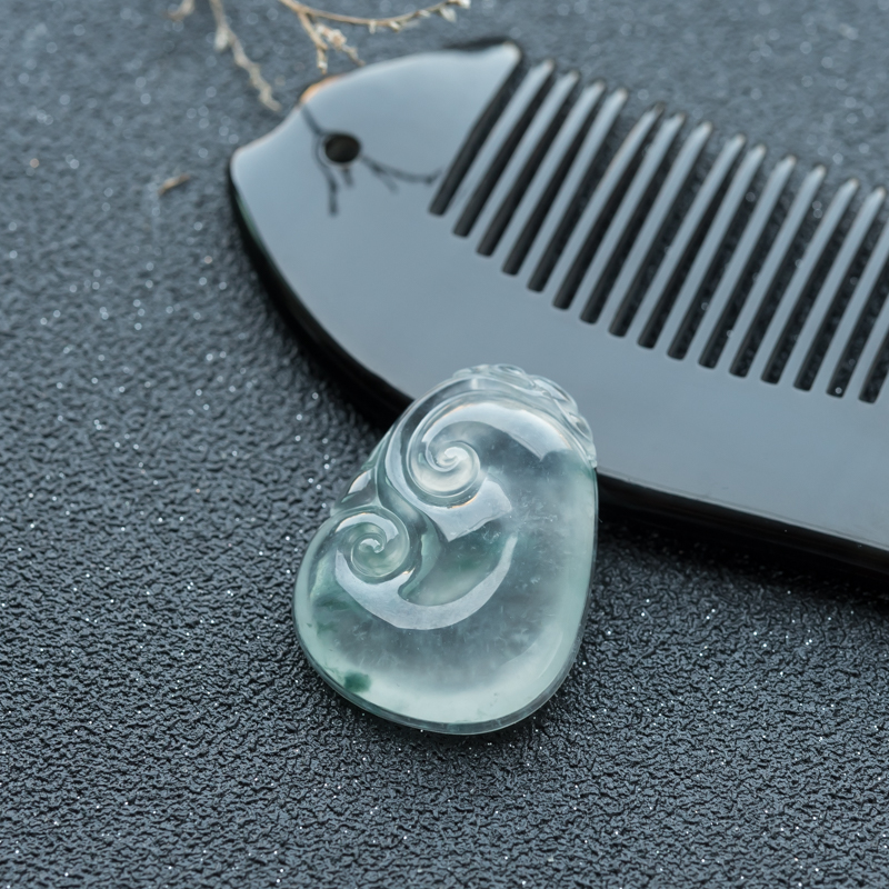 • 高冰种飘花翡翠如意吊坠