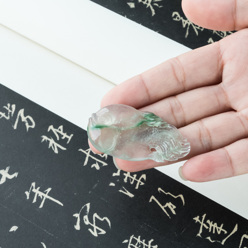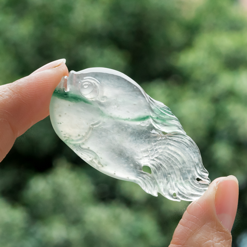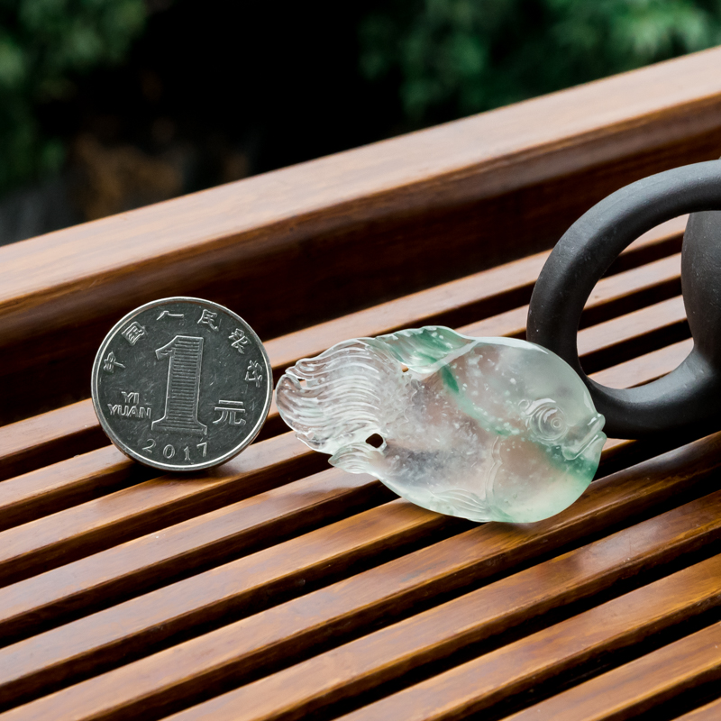 • [名  称] 高冰种飘花翡翠年年有余吊坠