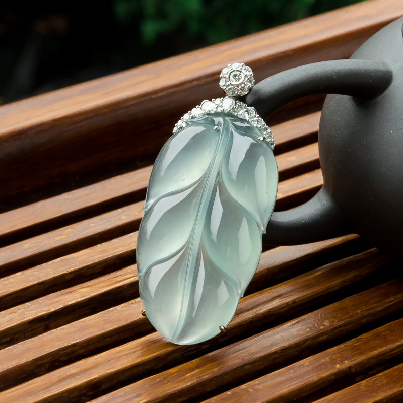 • [名  称] 18K高冰种晴水翡翠金枝玉叶吊坠