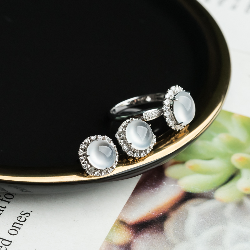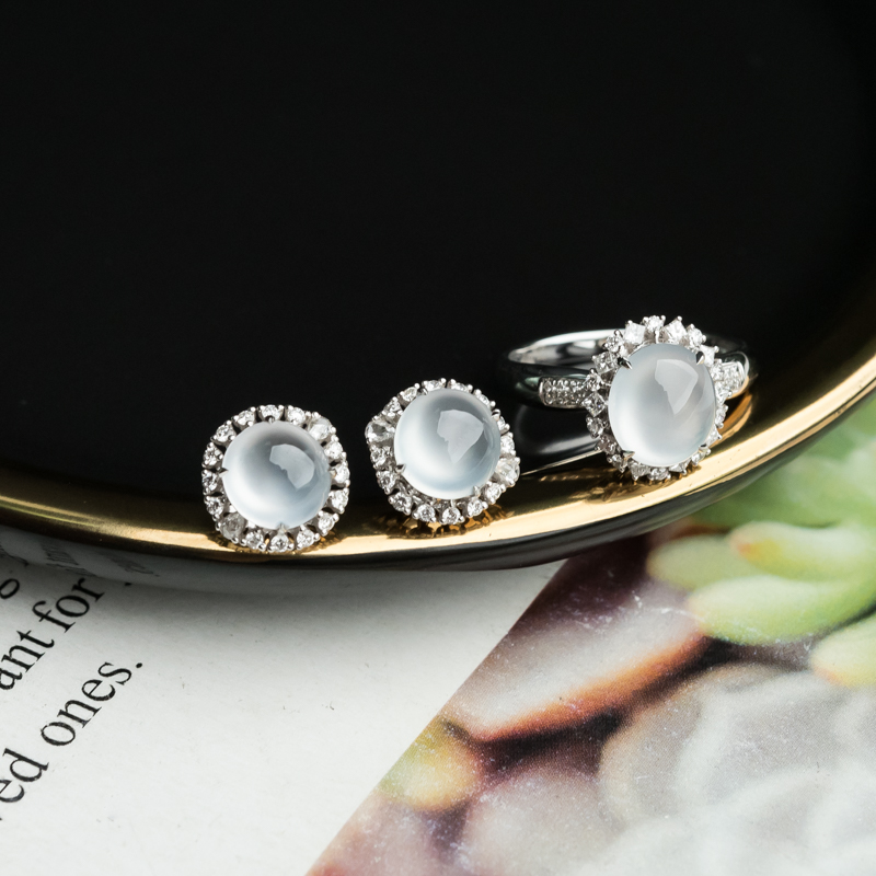 • [名  称] 18K高冰种翡翠耳钉/戒指套装