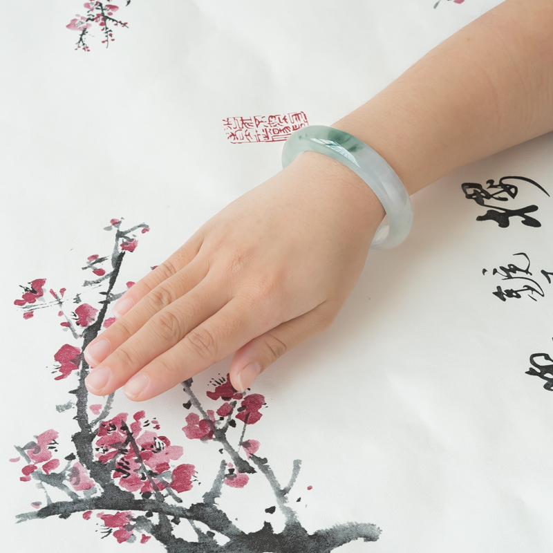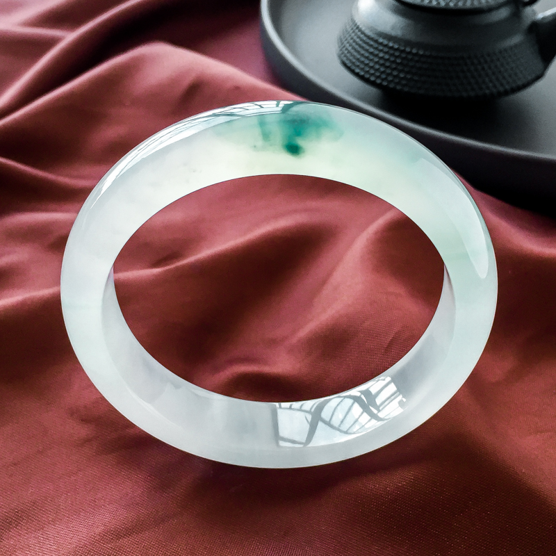 • 58mm高冰种飘花翡翠平安镯