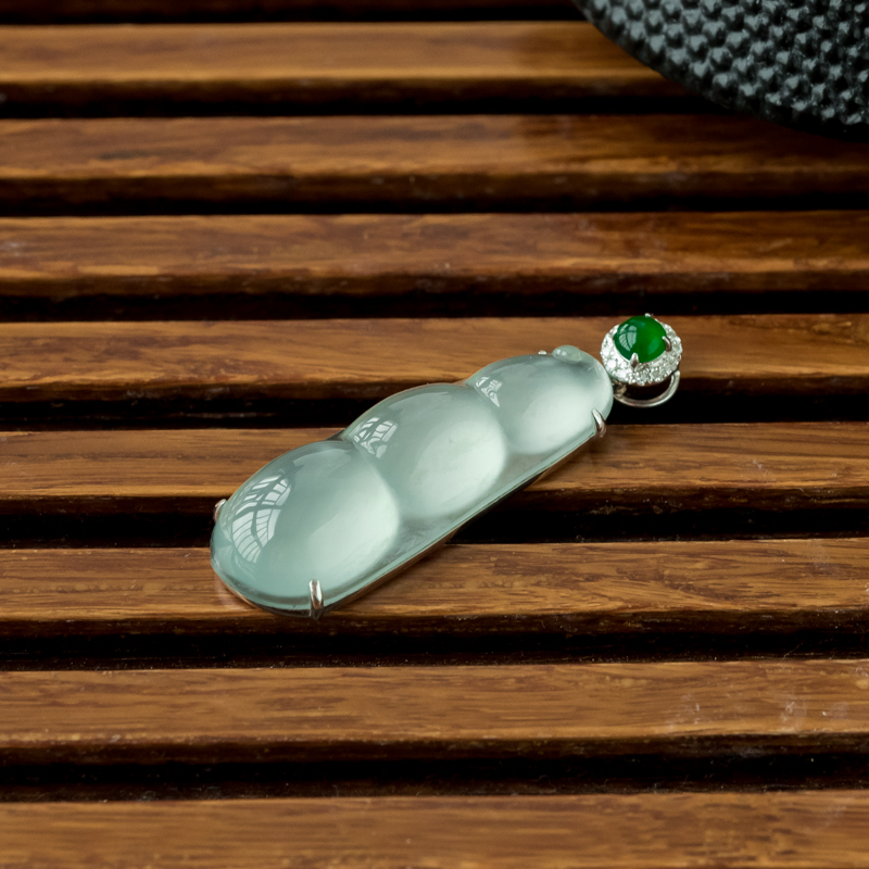 • [名  称] 18K高冰种晴水翡翠连中三元吊坠