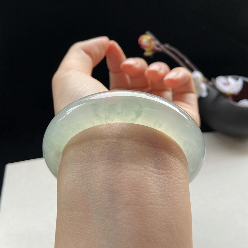 • 55mm高冰种飘花翡翠平安镯