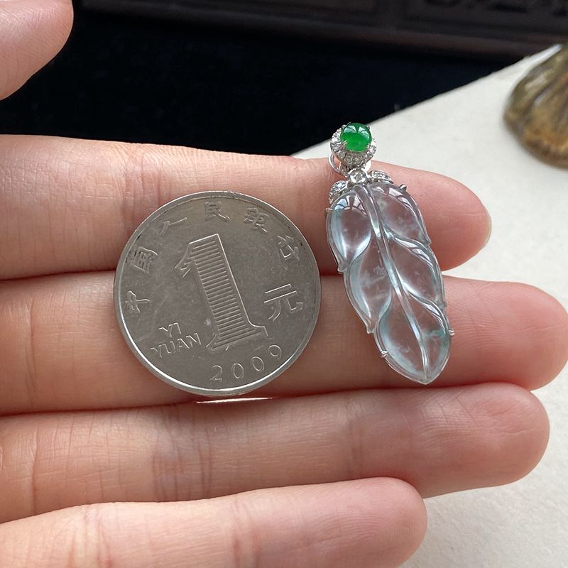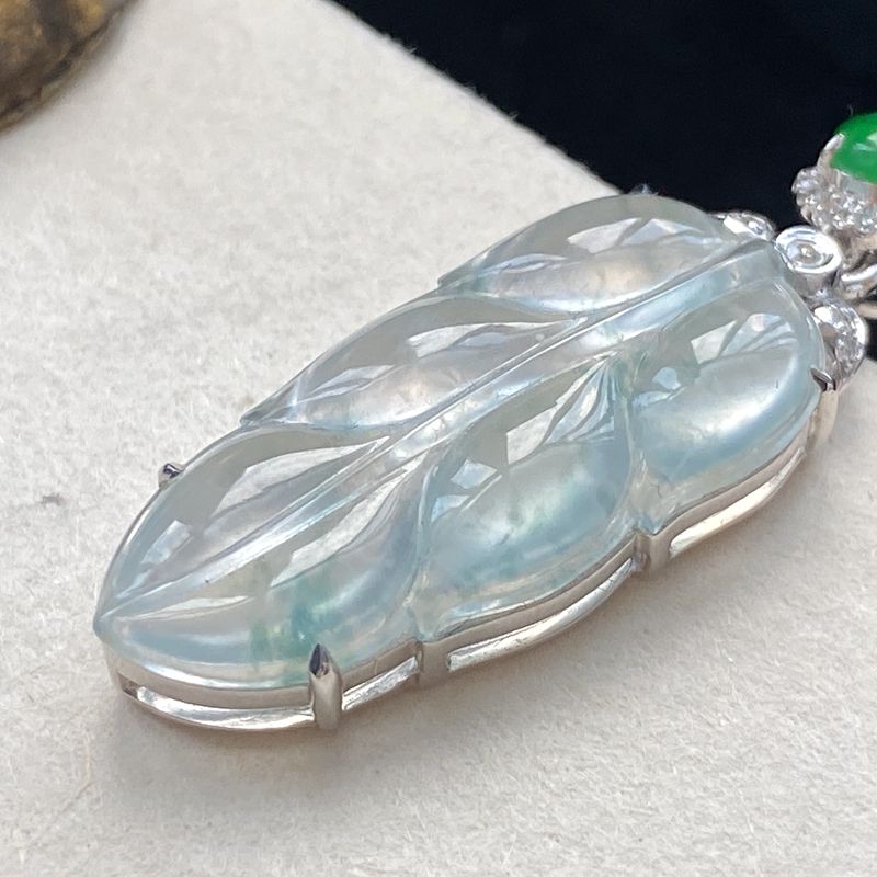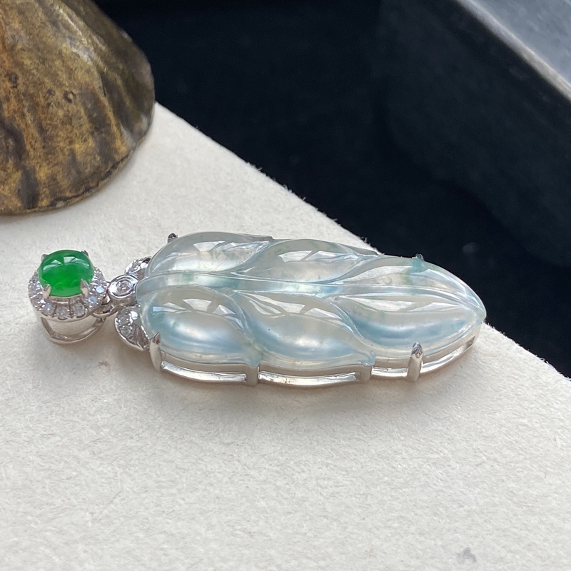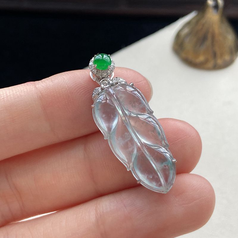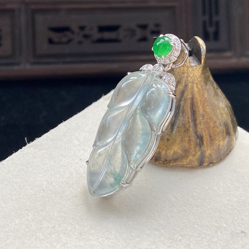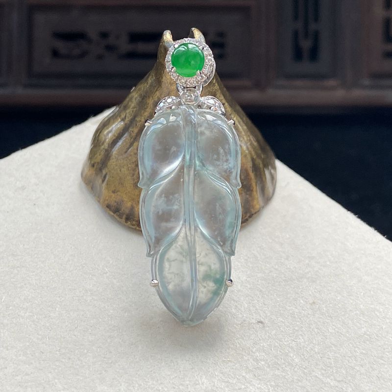 • 18K高冰种飘花翡翠金枝玉叶吊坠