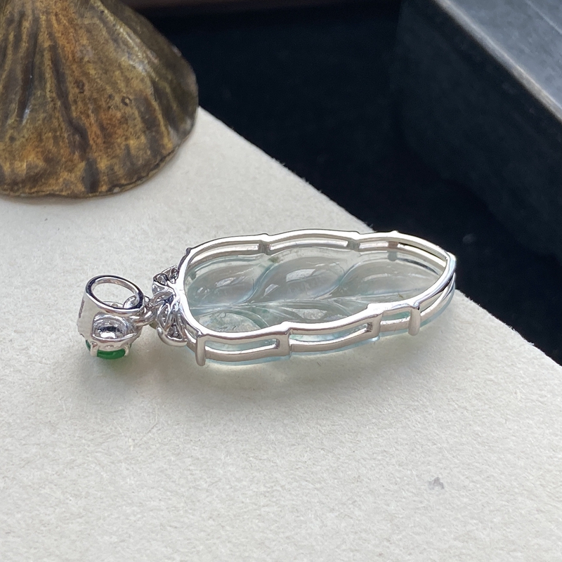 • [名  称] 18K高冰种飘花翡翠金枝玉叶吊坠
