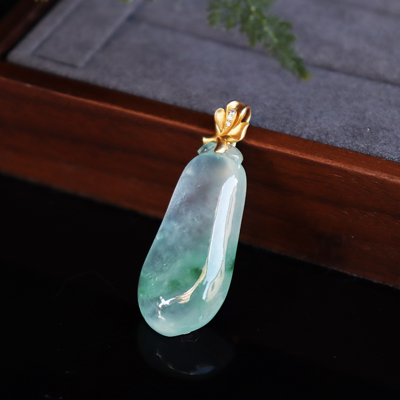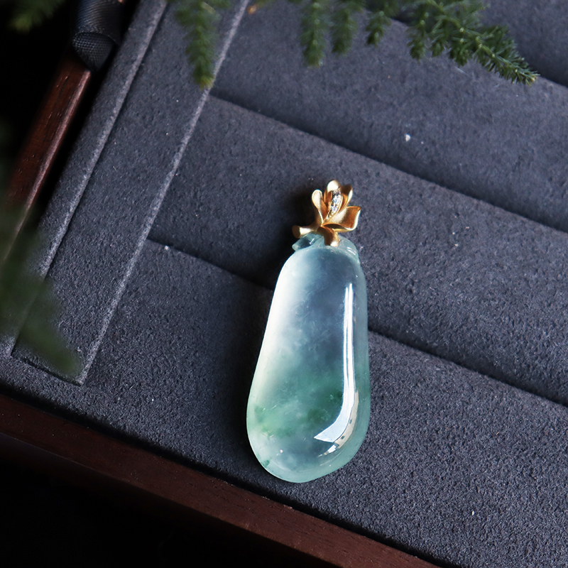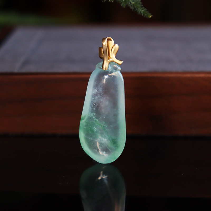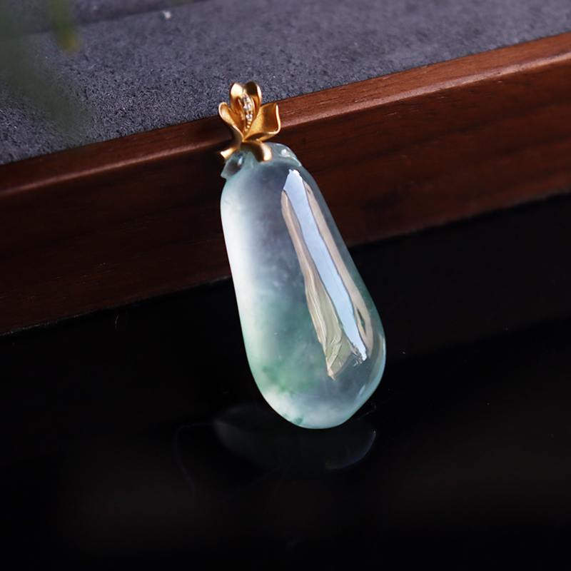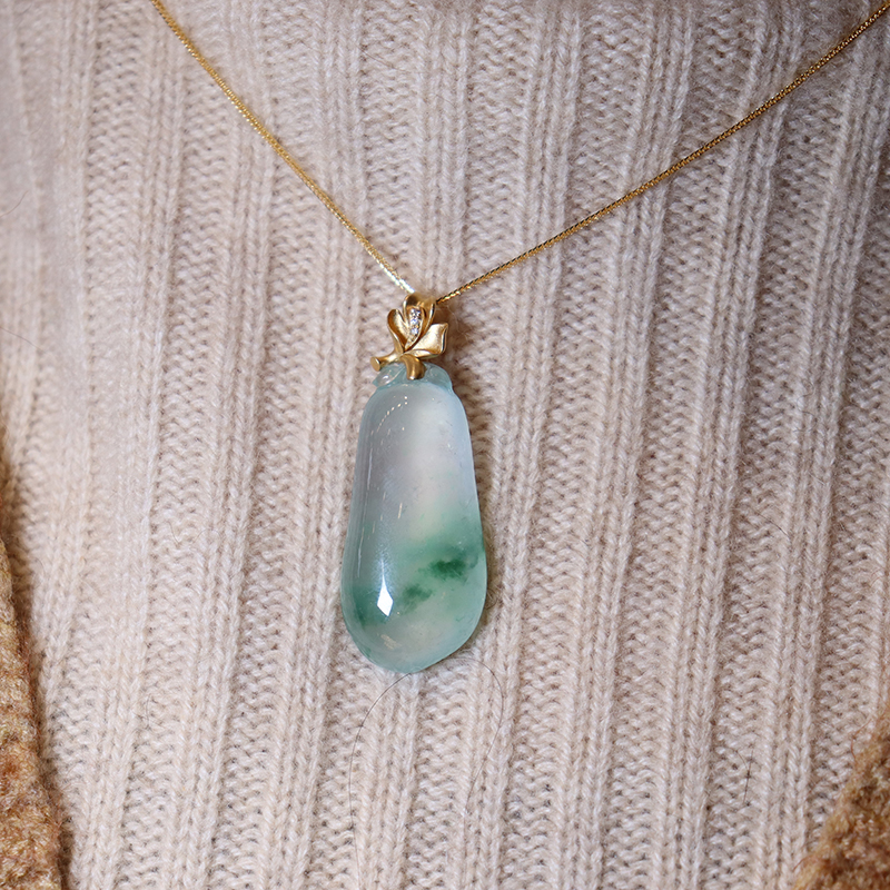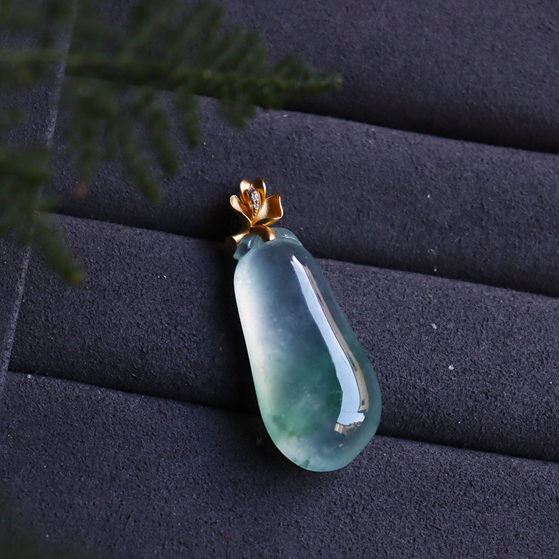 • 18k高冰种飘花翡翠福瓜吊坠