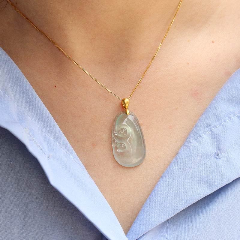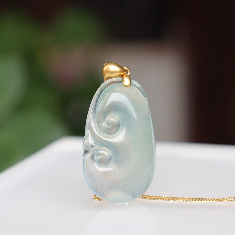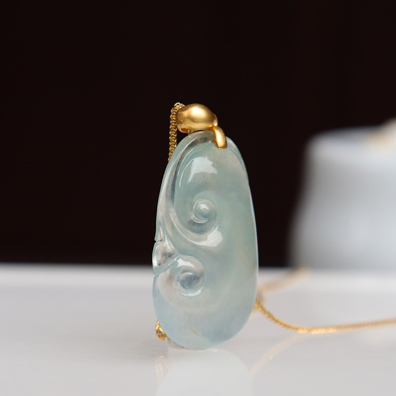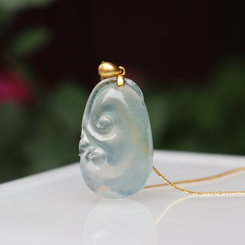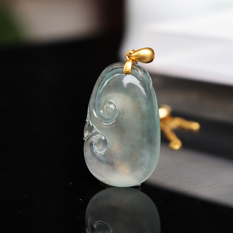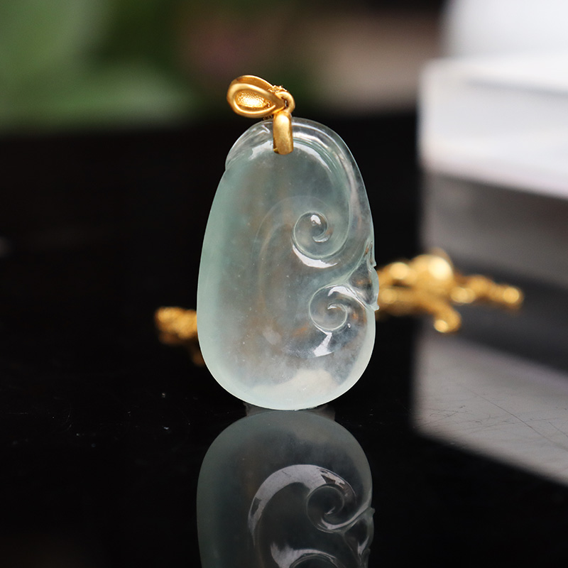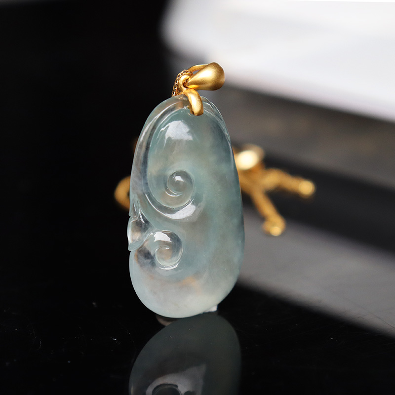 • 18k高冰种翡翠如意吊坠