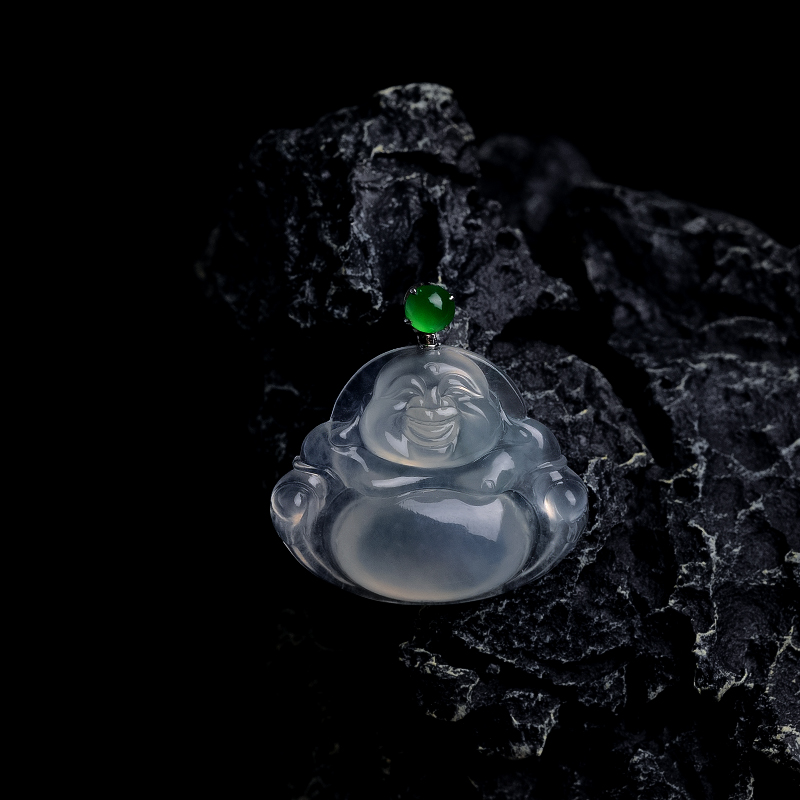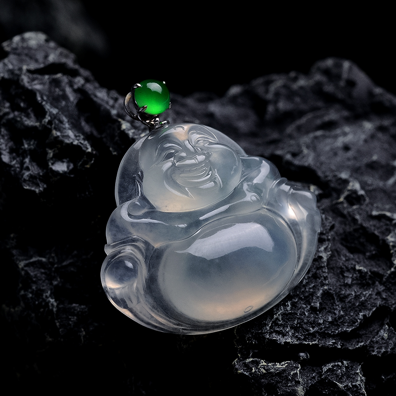 • 18k高冰种翡翠弥勒佛吊坠