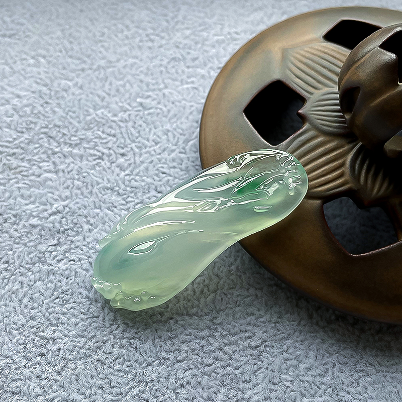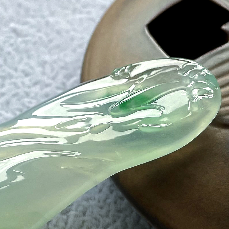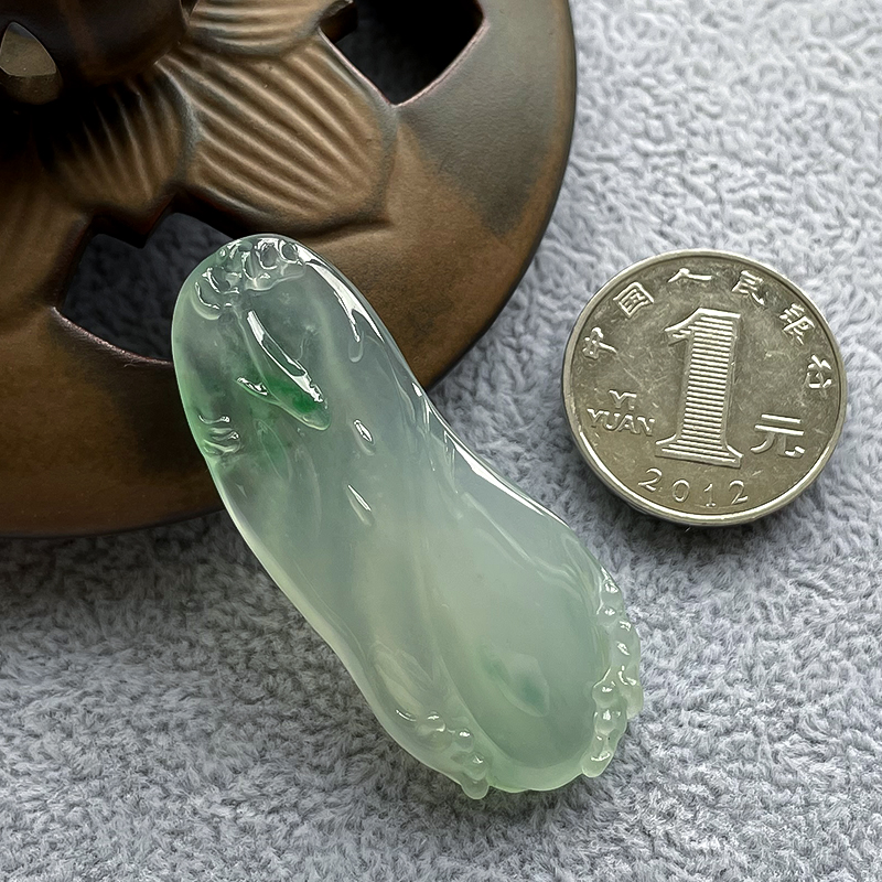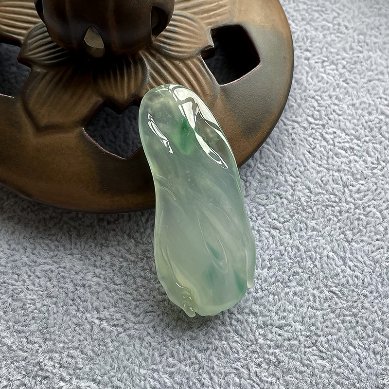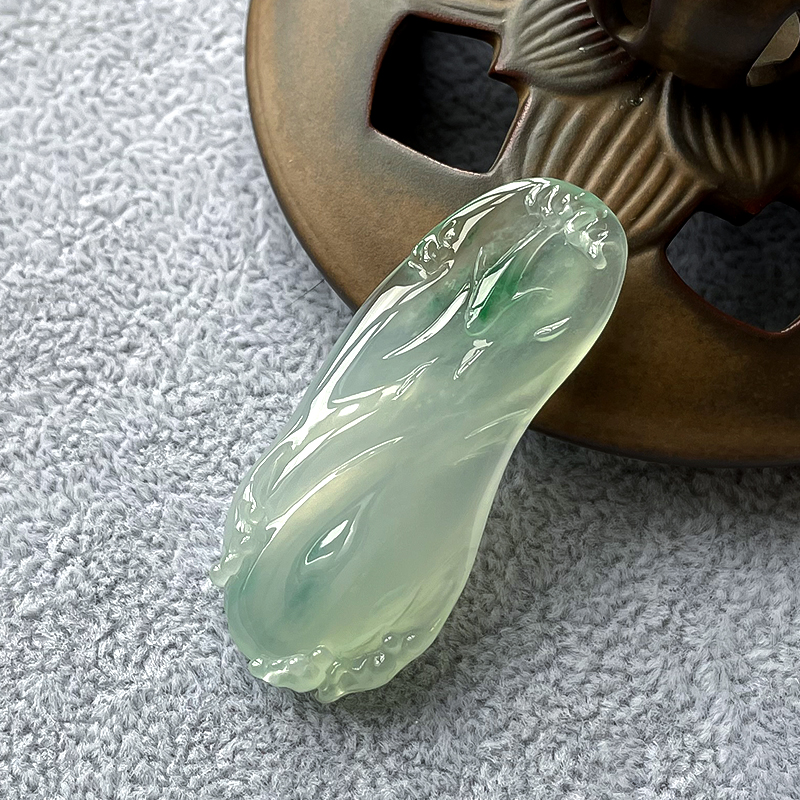 • 高冰种飘翠翡翠力争上游吊坠