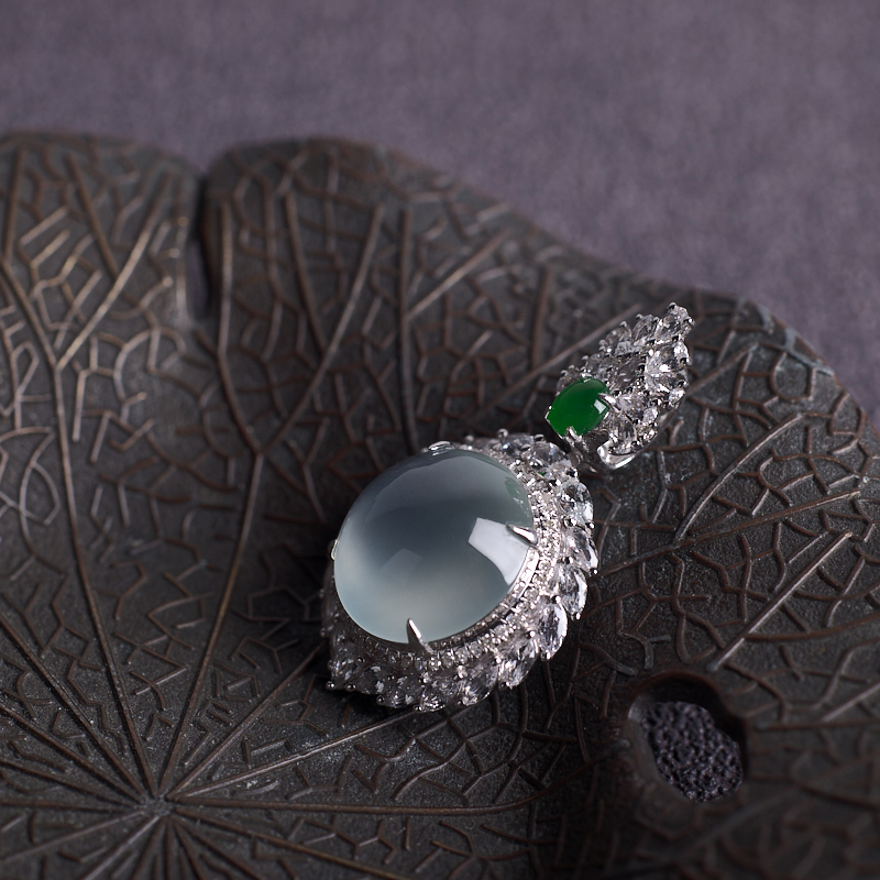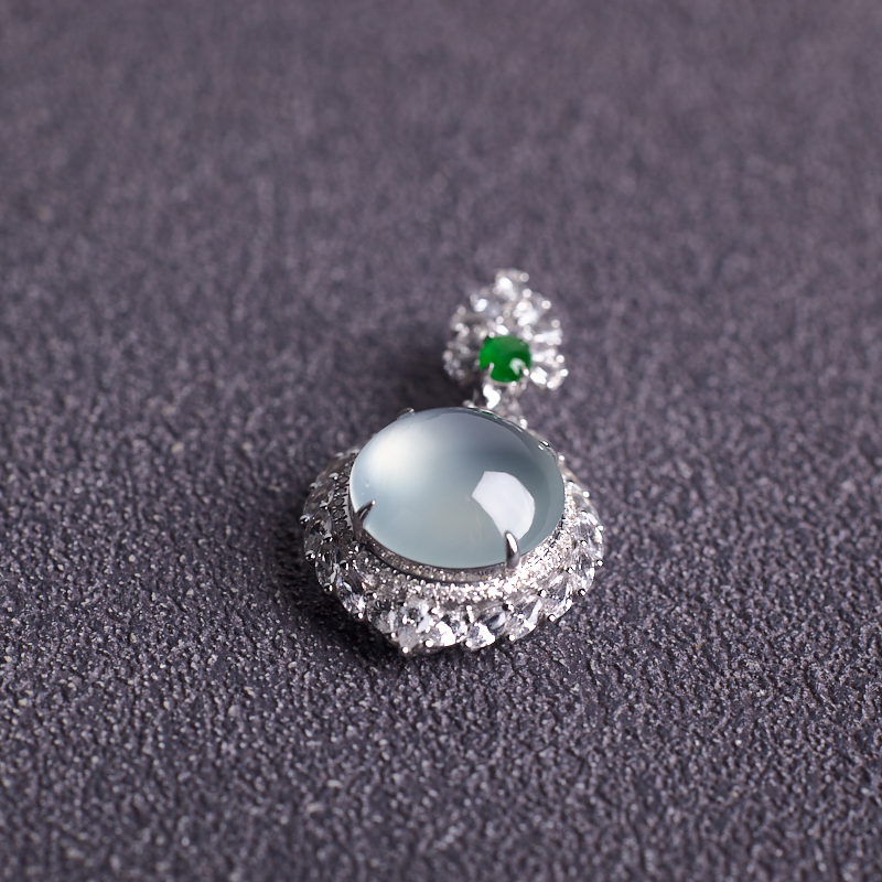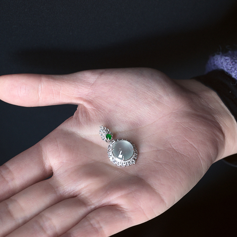 • 18K高冰种翡翠圆形吊坠