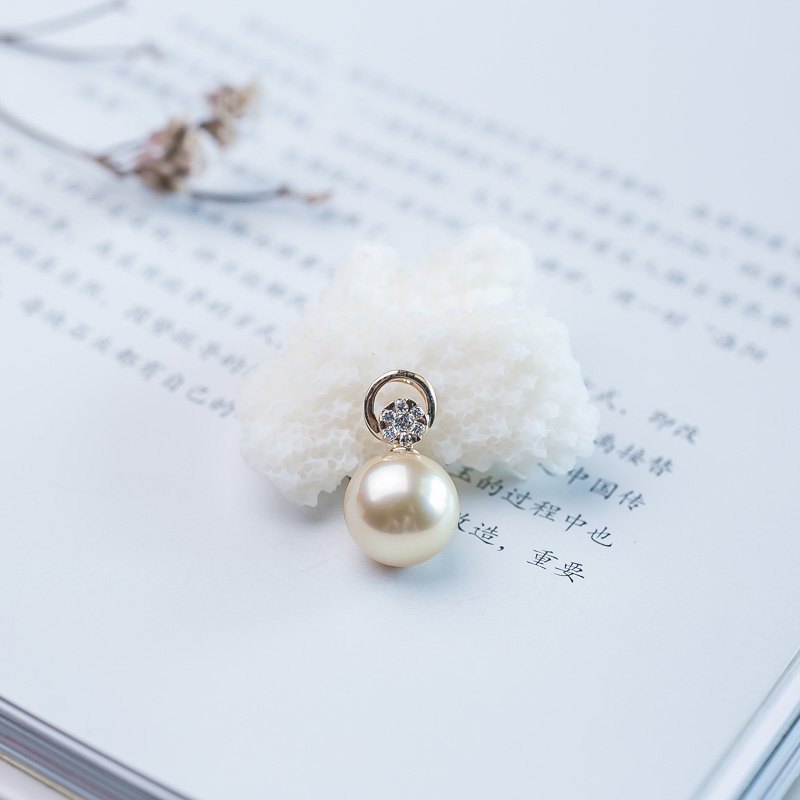 • 18K海水金色珍珠吊坠