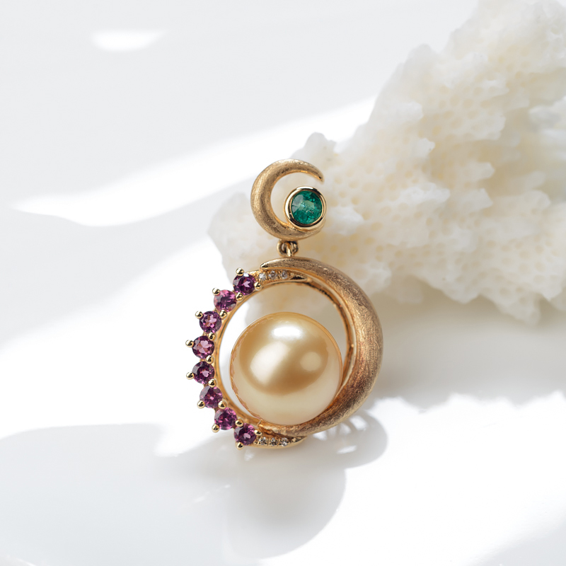 • 18K海水金色珍珠吊坠