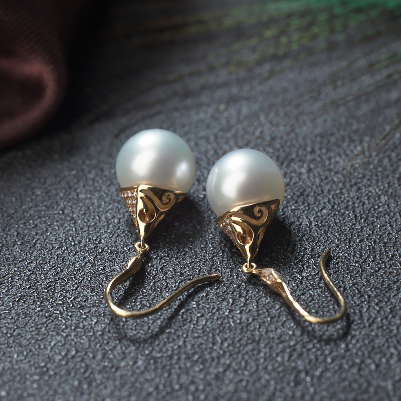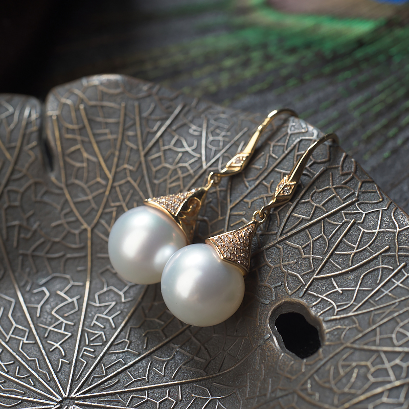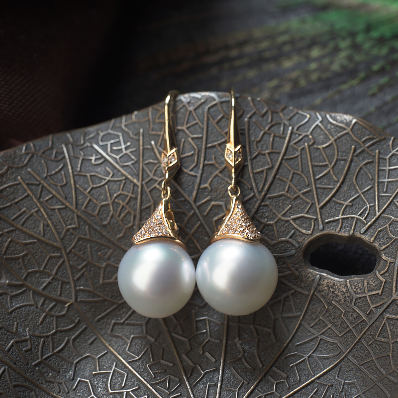 • 18K海水白色珍珠耳坠