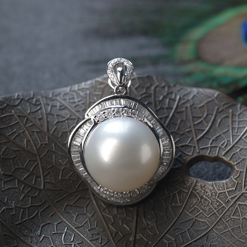 • 18K海水白色珍珠吊坠
