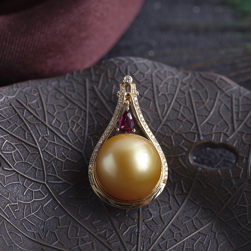 • 18K海水金色珍珠吊坠