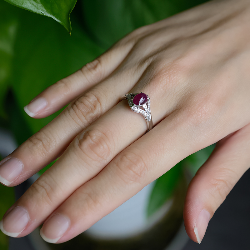 [尺  寸] 主石长7.1mm宽5.1mm厚2.8mm,指圈14.5#,可改