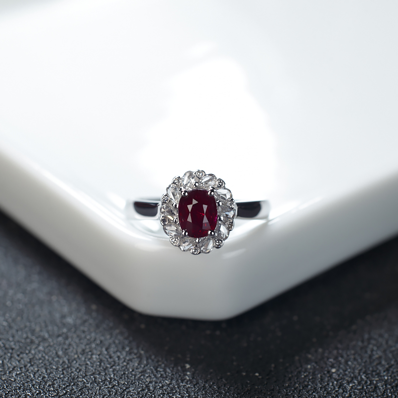 [尺  寸] 主石长5.7mm宽4.6mm厚2.8mm,指圈14#,可改