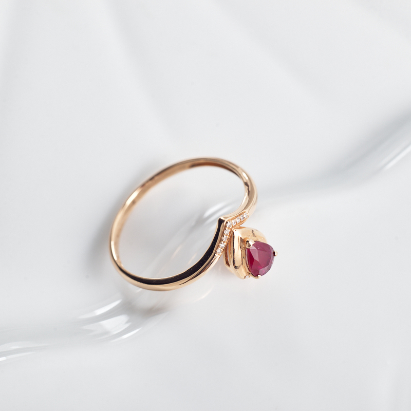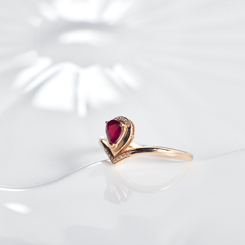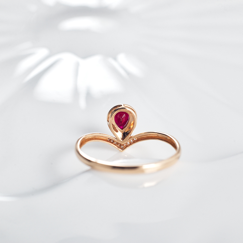 • 18K鸽血红红宝石水滴戒指
