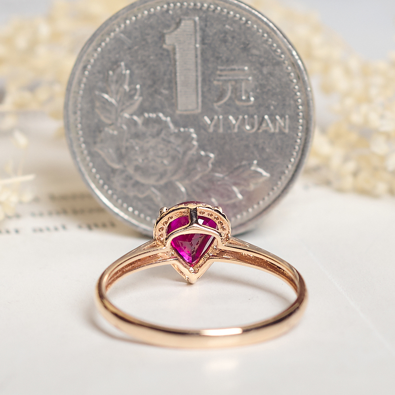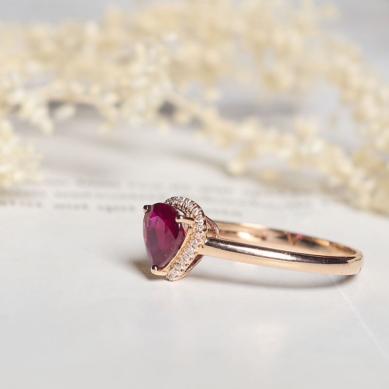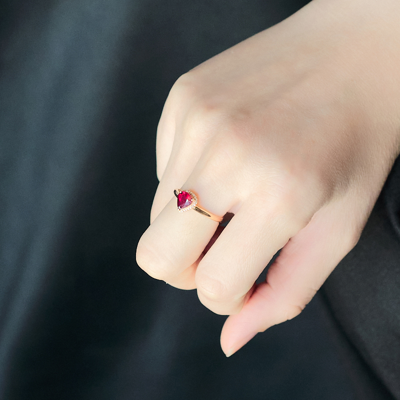 • 18K鸽血红红宝石水滴戒指