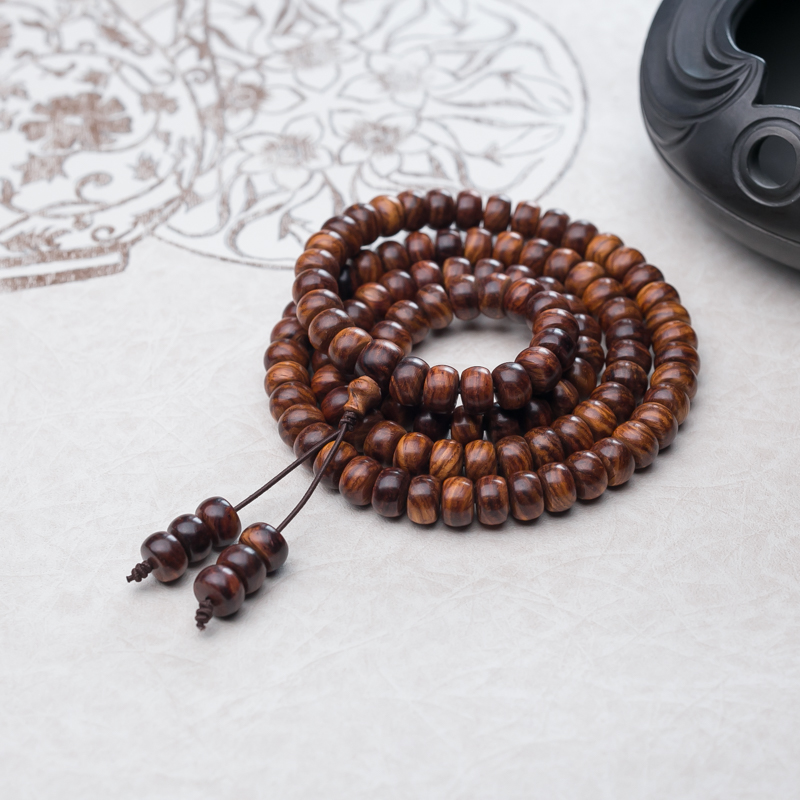 • 海南虎皮纹黄花梨鼓珠108佛珠