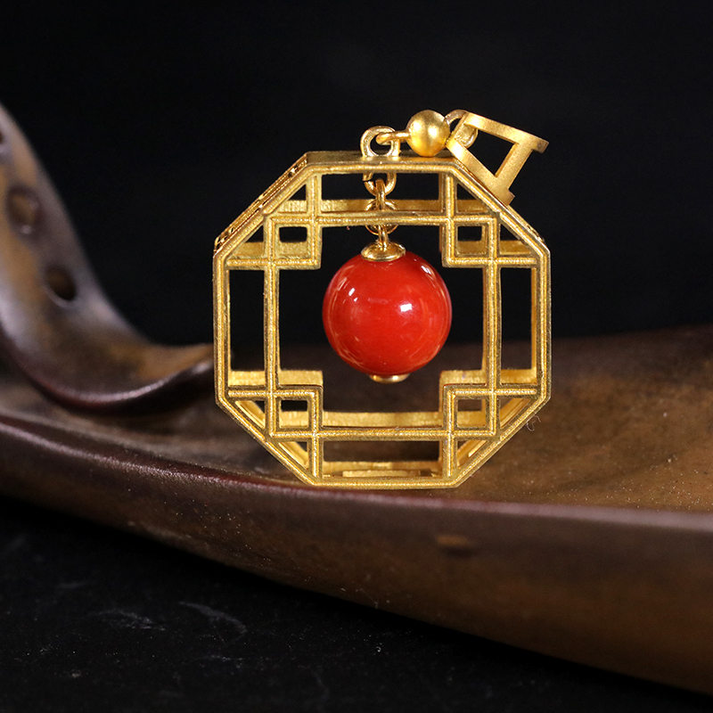 18K阿卡牛血红珊瑚吊坠