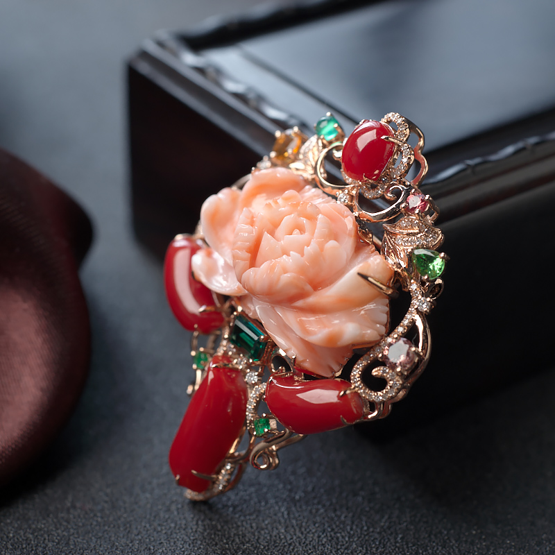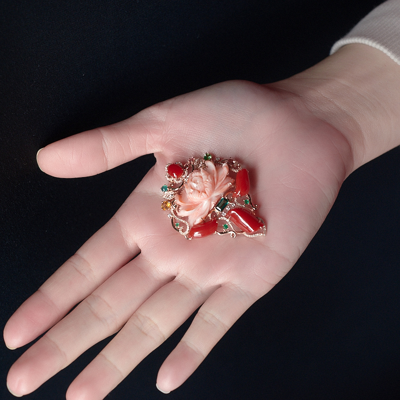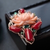 • 18K珊瑚花开富贵吊坠/胸针两用款