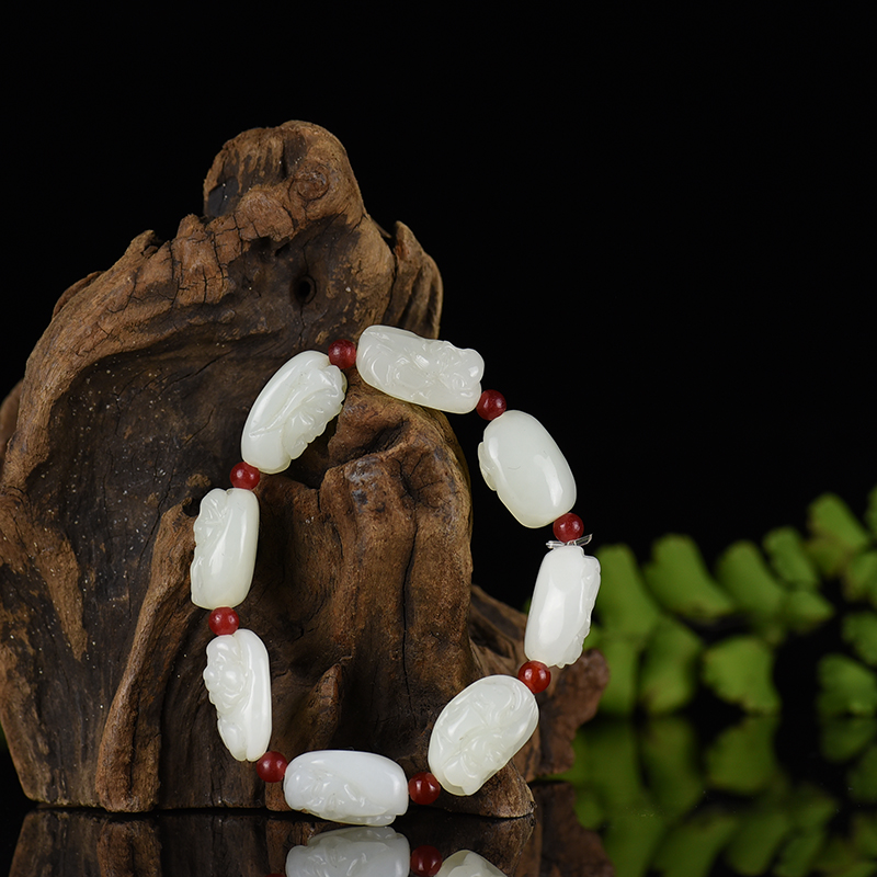 • 山料和田白玉福禄寿单圈手串