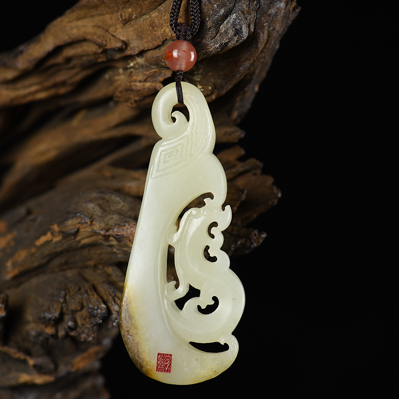 • 籽料和田白玉龙牌吊坠