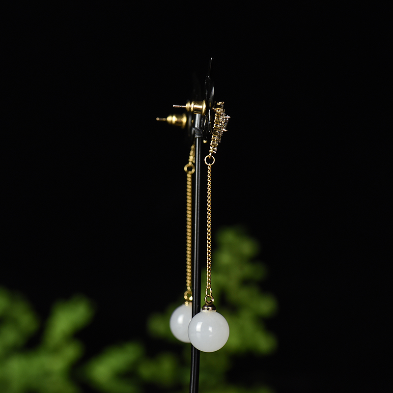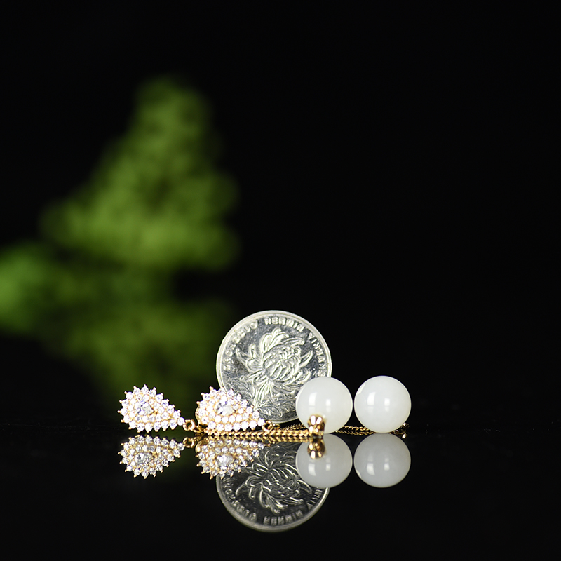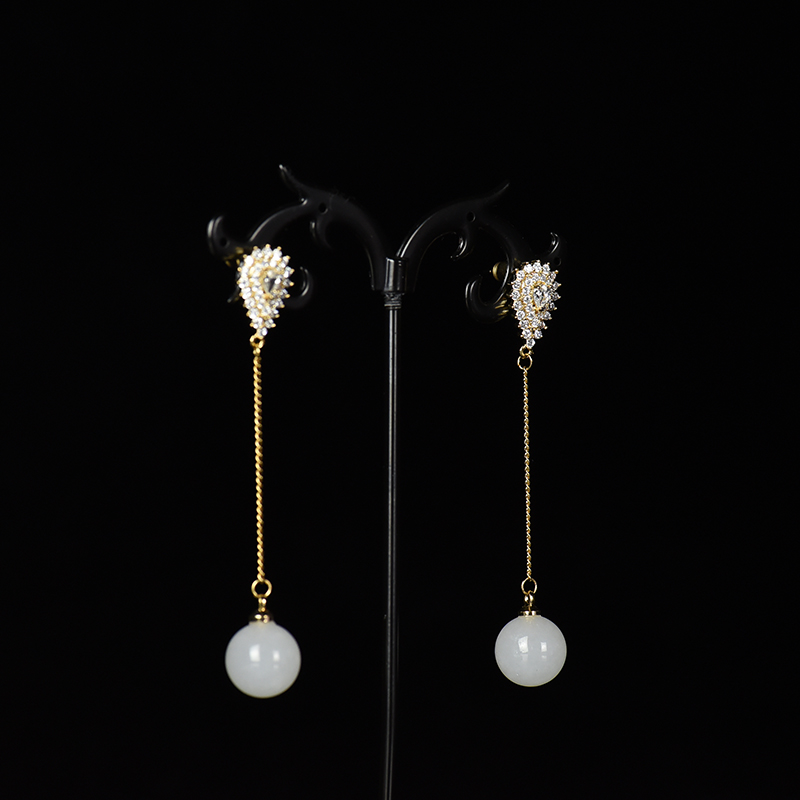 • [名  称] 银镶锆石山料和田白玉耳坠