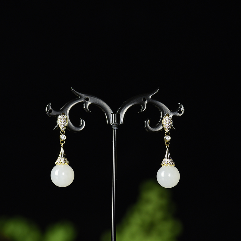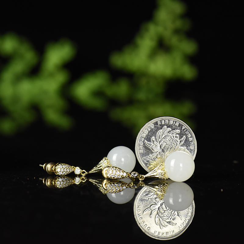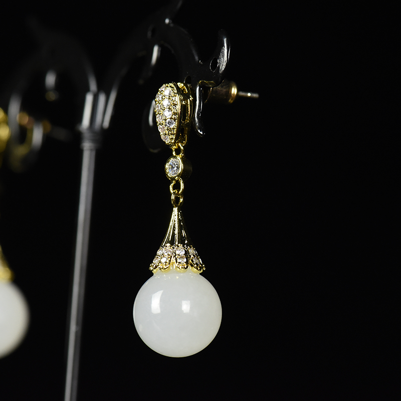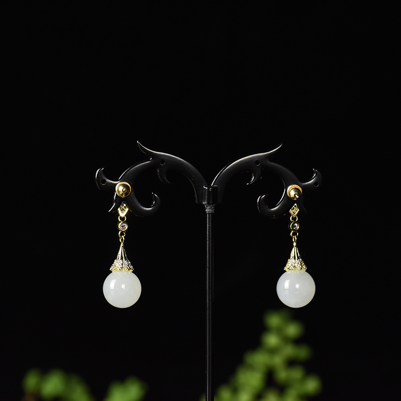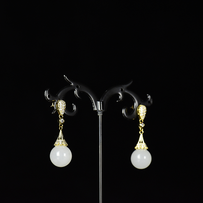 • [名  称] 银镶锆石山料和田白玉耳坠