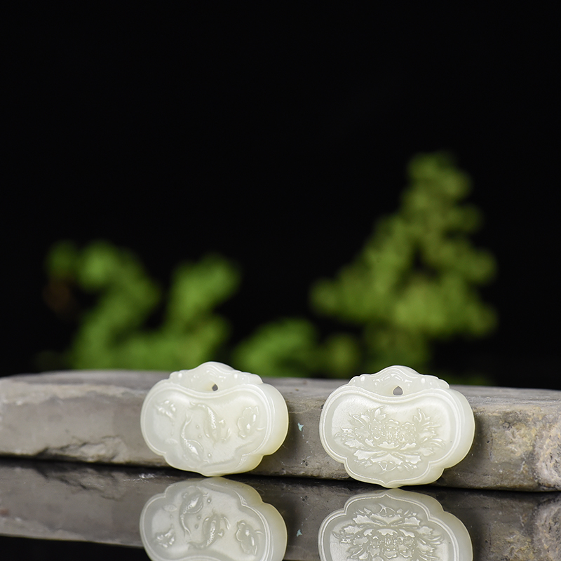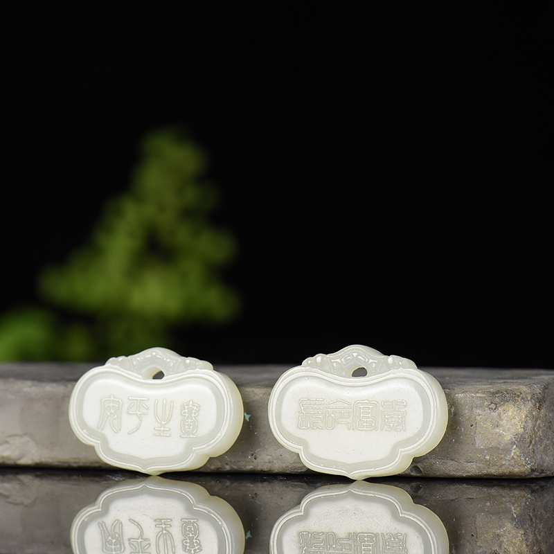 • 籽料和田白玉平安锁吊坠(二件)