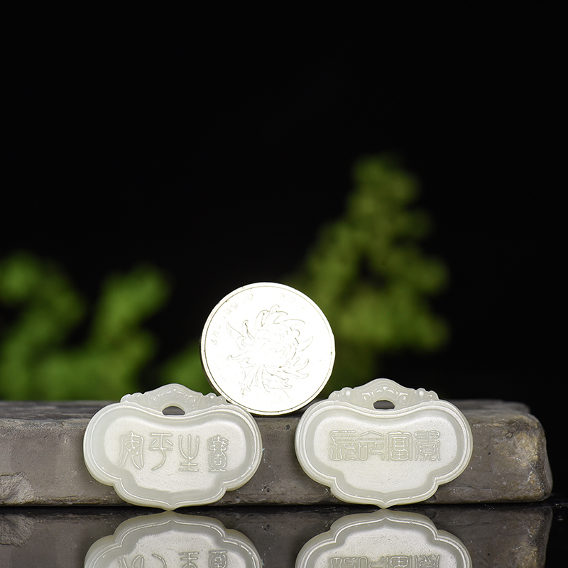• [名  称] 籽料和田白玉平安锁吊坠(二件)