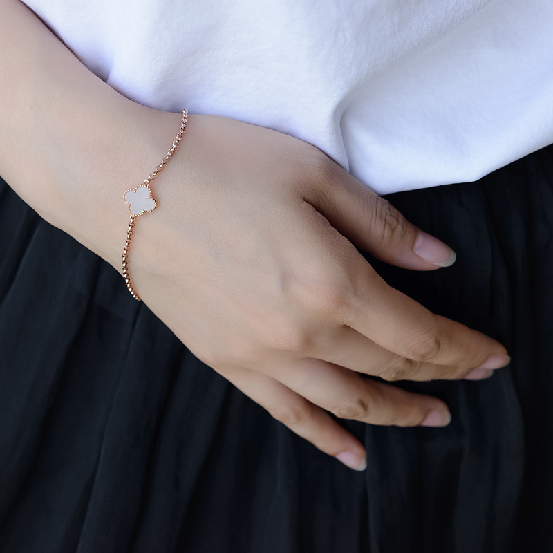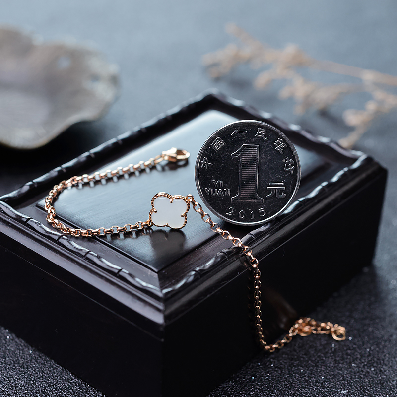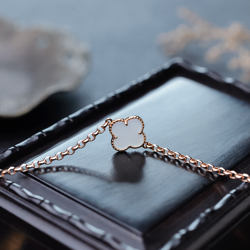• [名  称] 特:18K山流水料和田白玉四叶草手链
