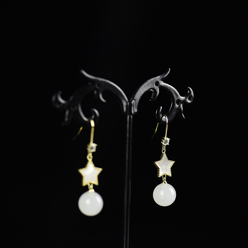 • [名  称] 银镶山料和田白玉耳坠