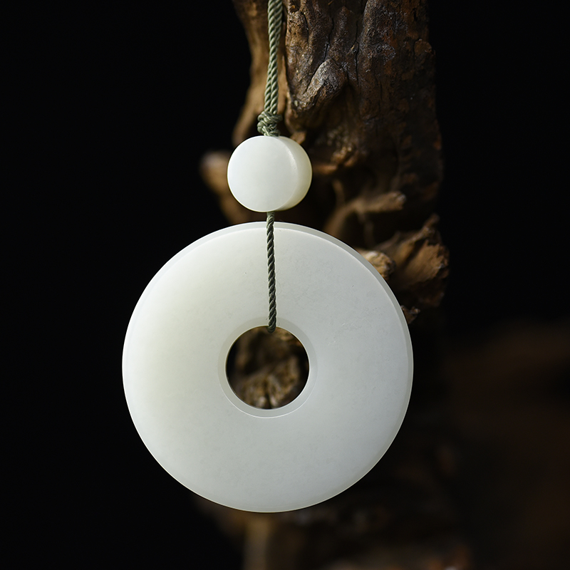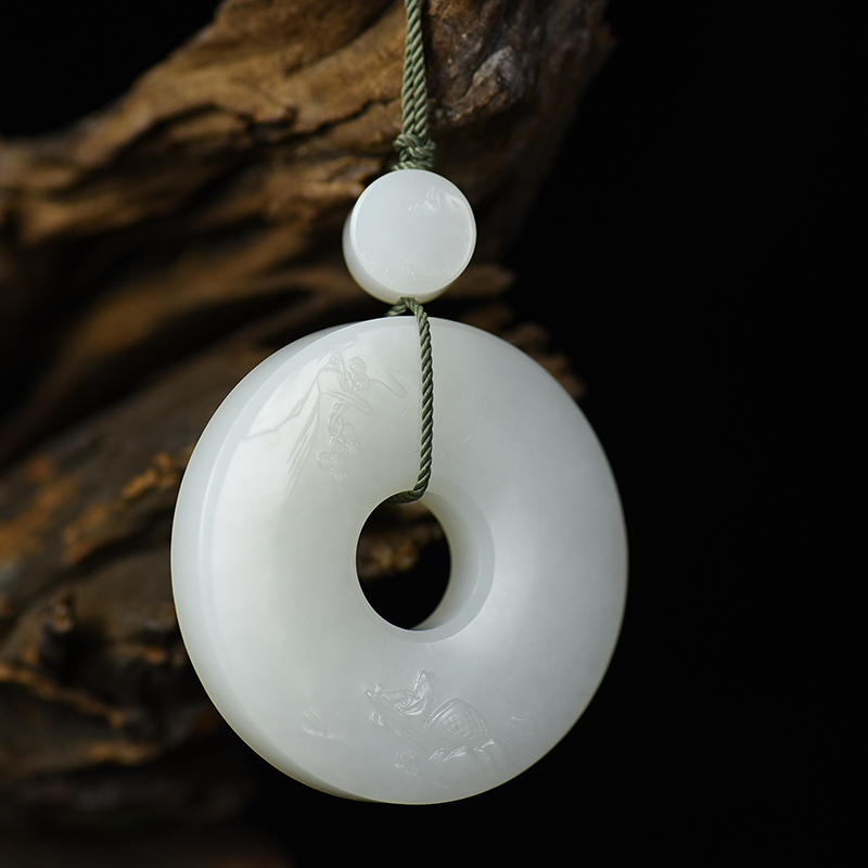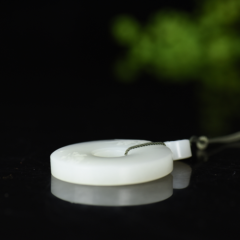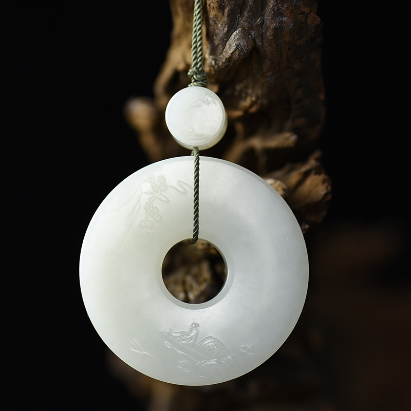 • 山流水料和田羊脂白玉闲趣平安环吊坠