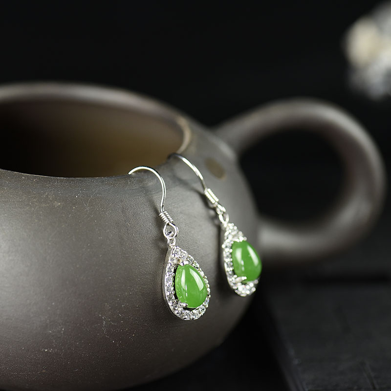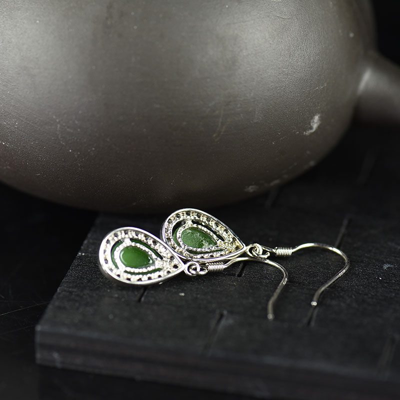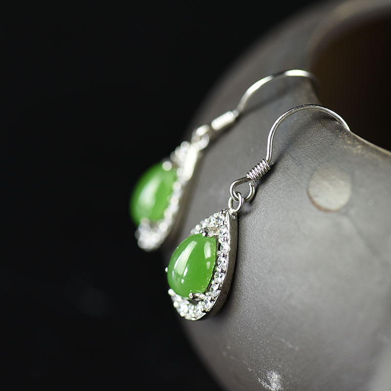 • [名  称] 银镶锆石山料和田碧玉耳坠