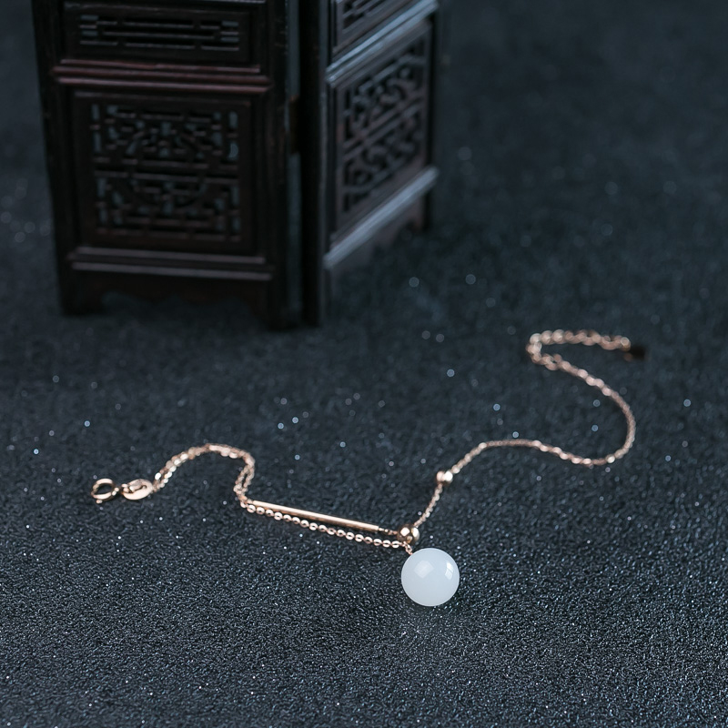 • 特:18K山流水料和田白玉手链