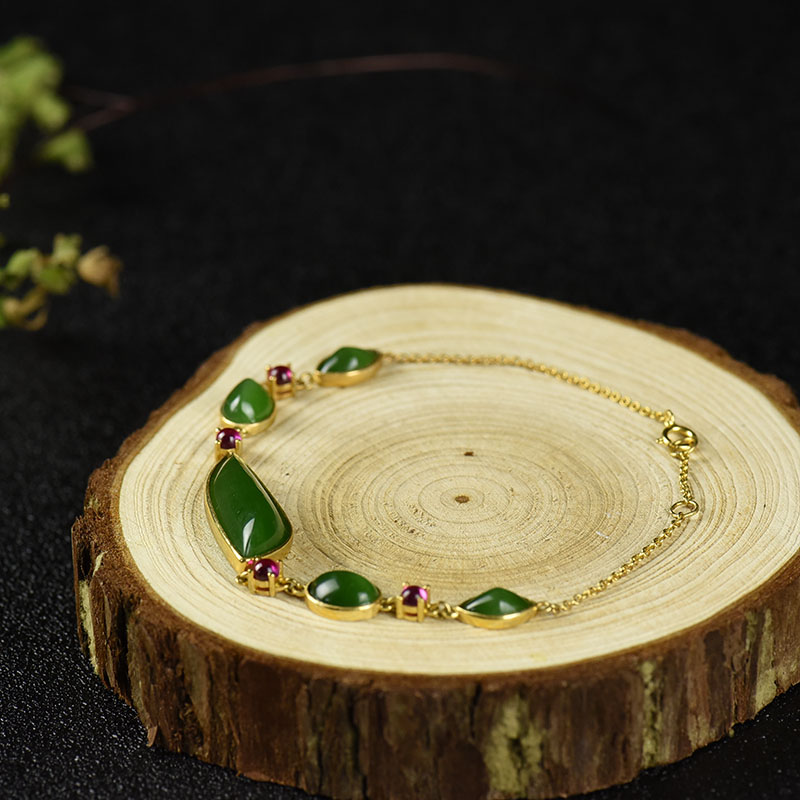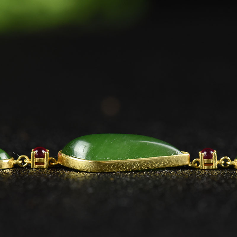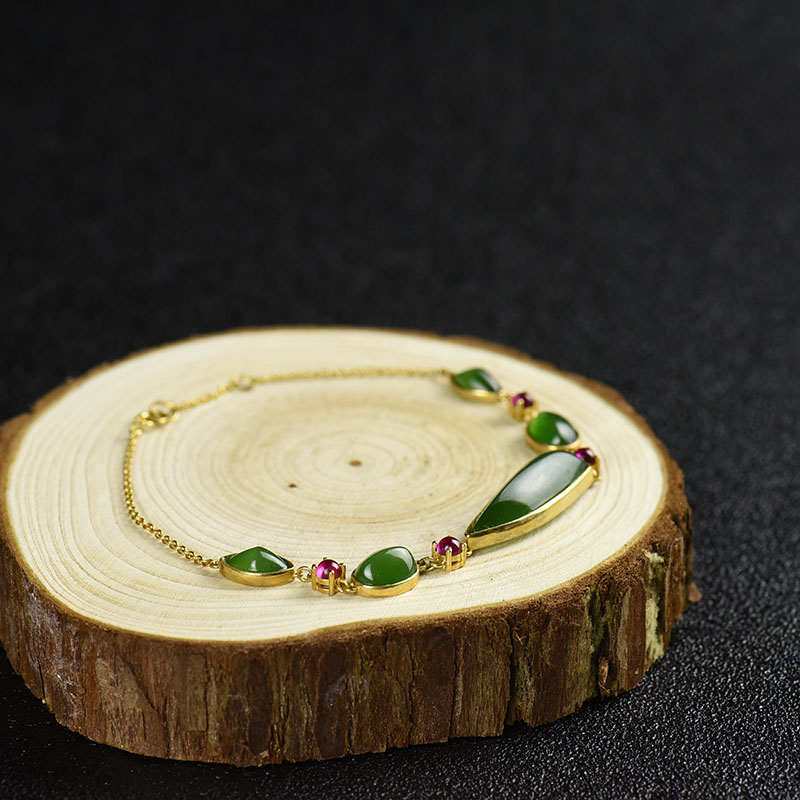 • 18k金镶山料和田碧玉手链