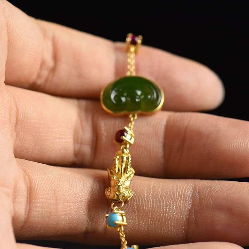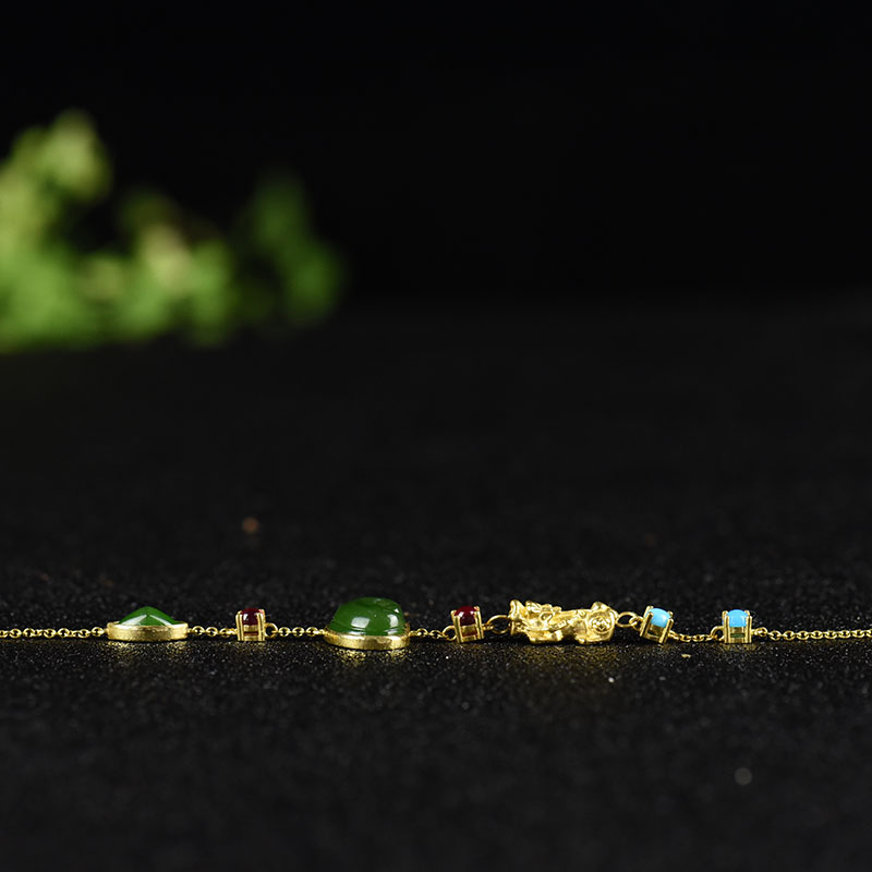 • [名  称] 18k金镶山料和田碧玉招财手链