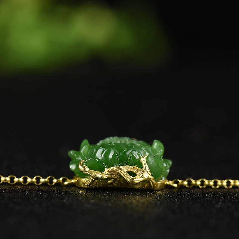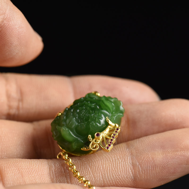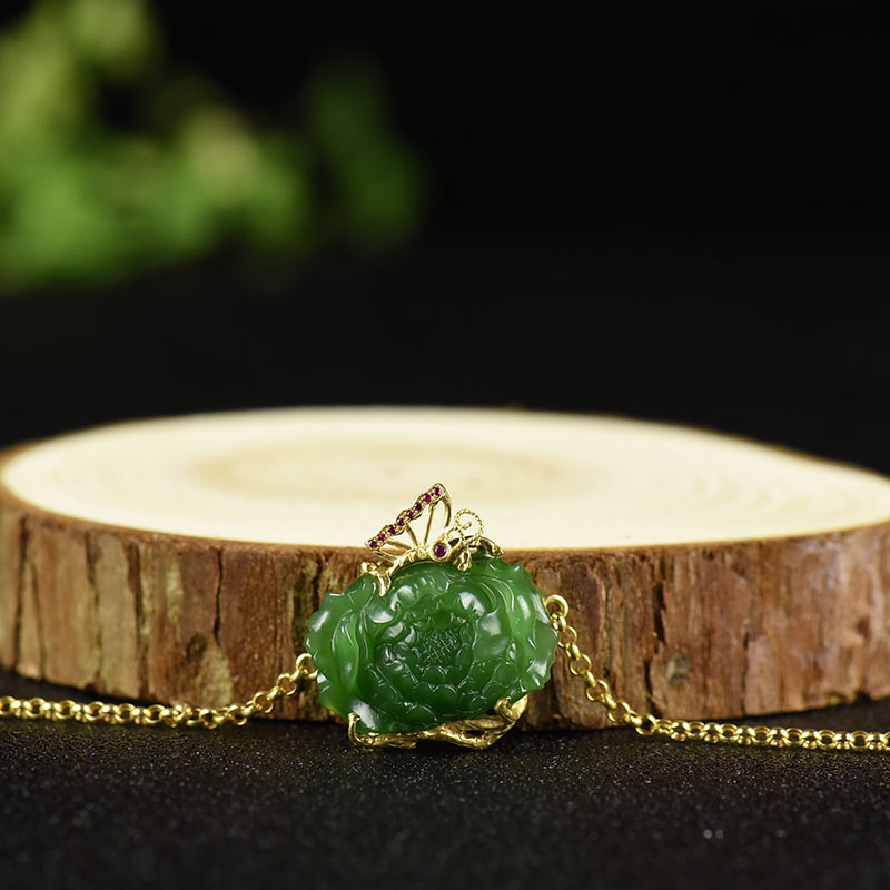 • 18k金镶山料和田碧玉花开富贵手链