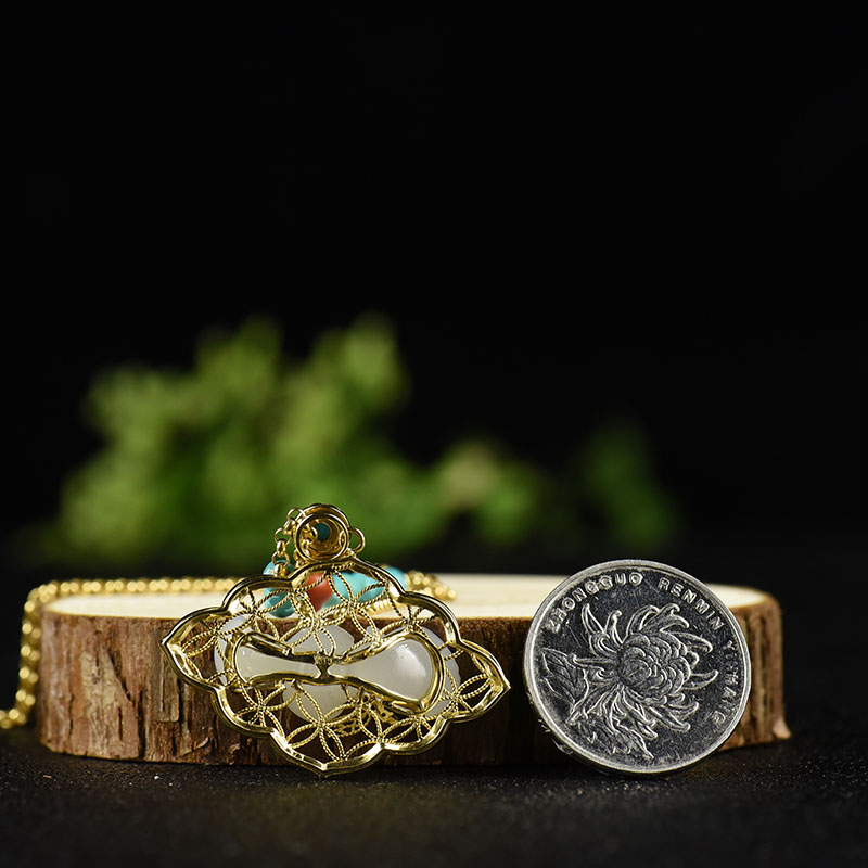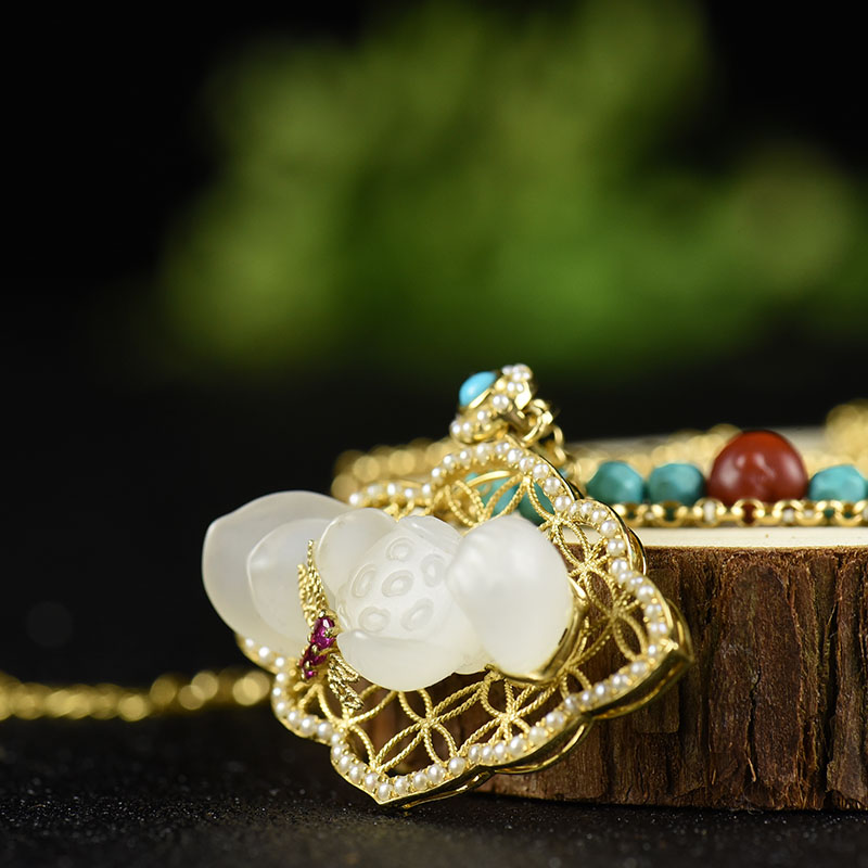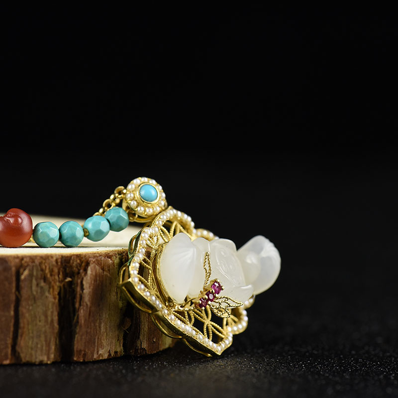 • [名  称] 18k金镶山料和田白玉花开富贵项链