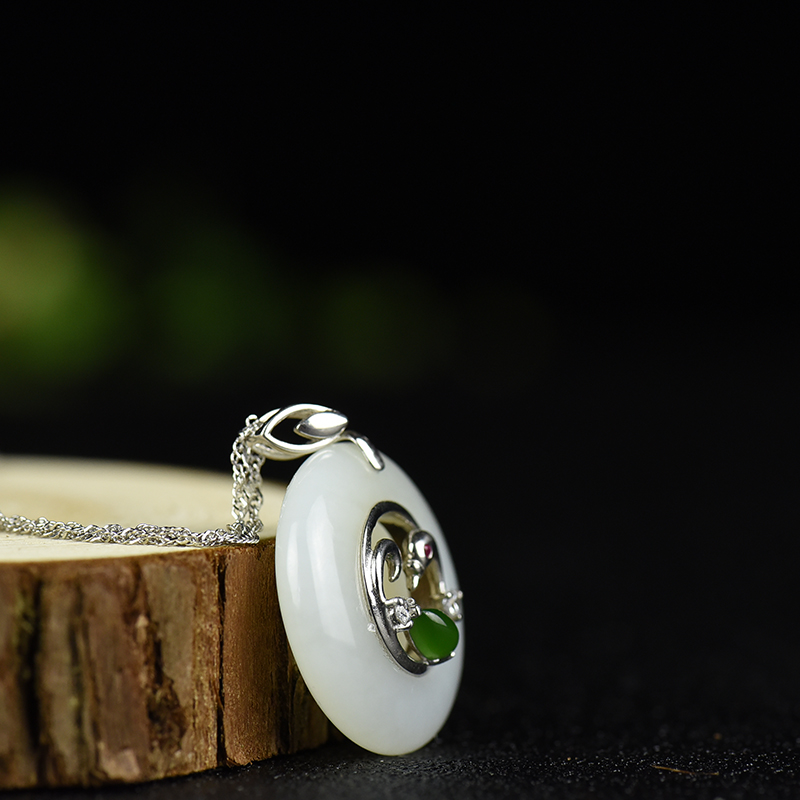 • [名  称] 银镶籽料和田白玉天鹅项链