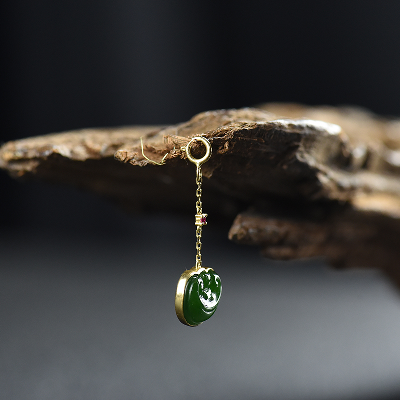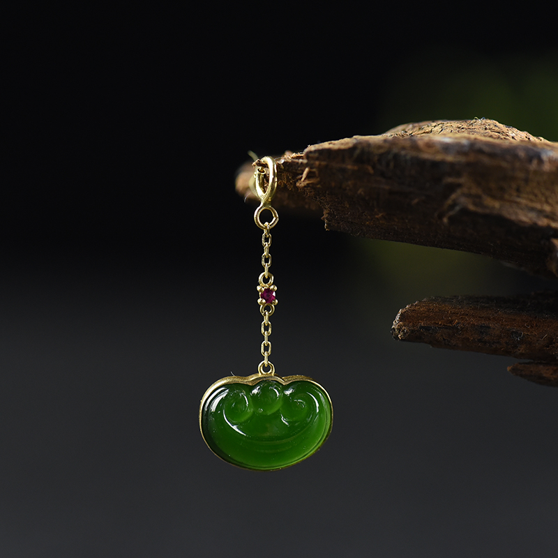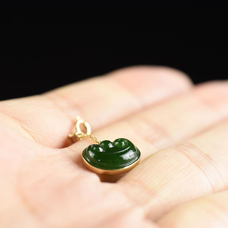 • 18k镶山料和田碧玉如意卡子配件
