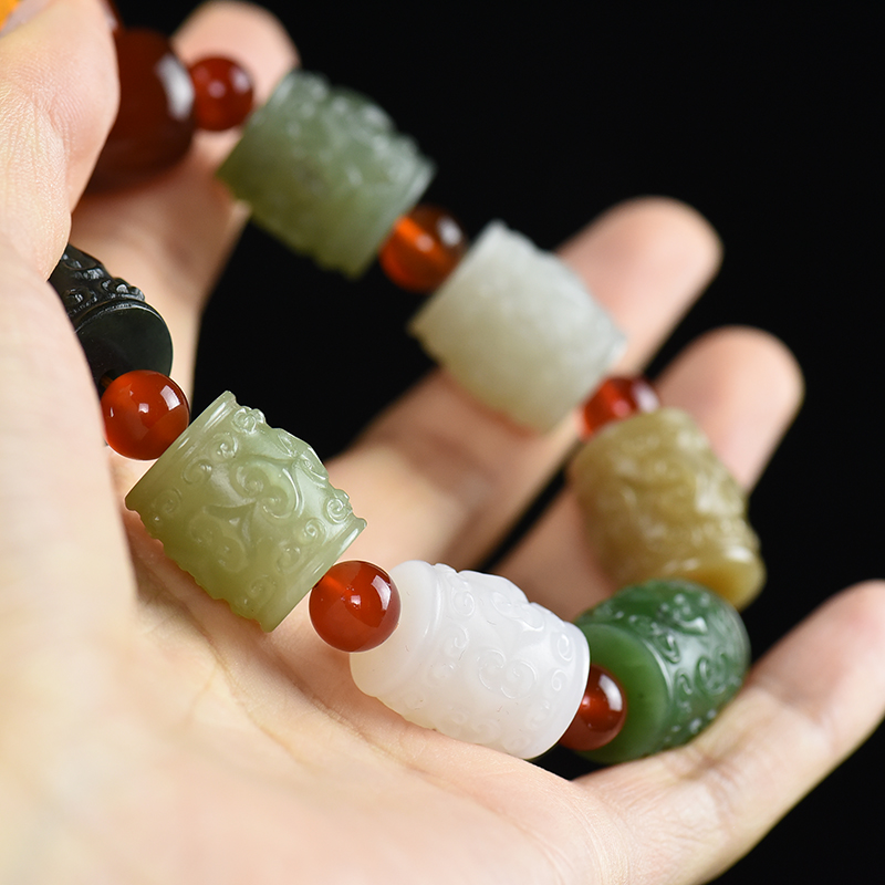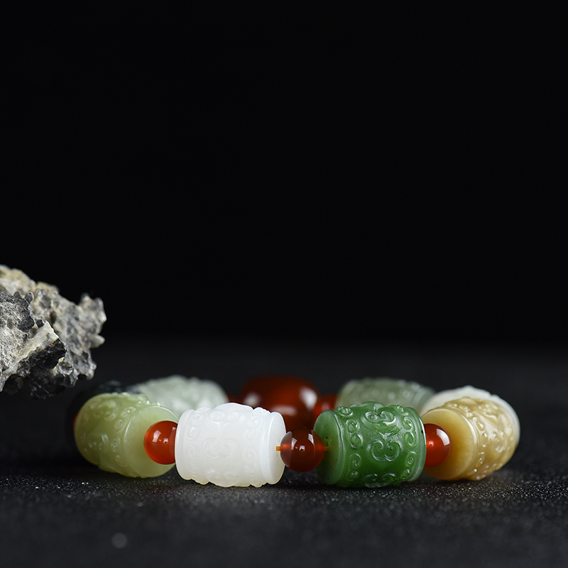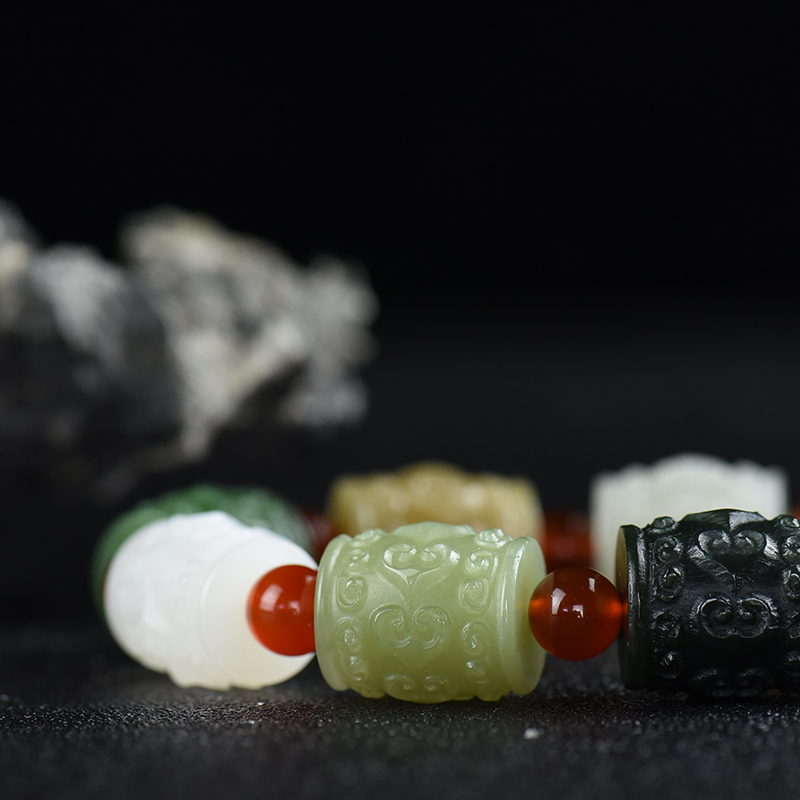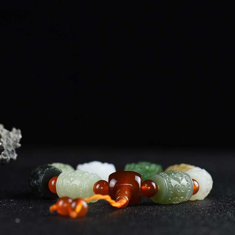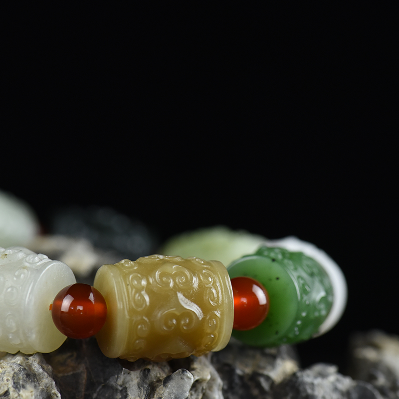 • [名  称] 山料和田玉仿古纹多宝单圈手串