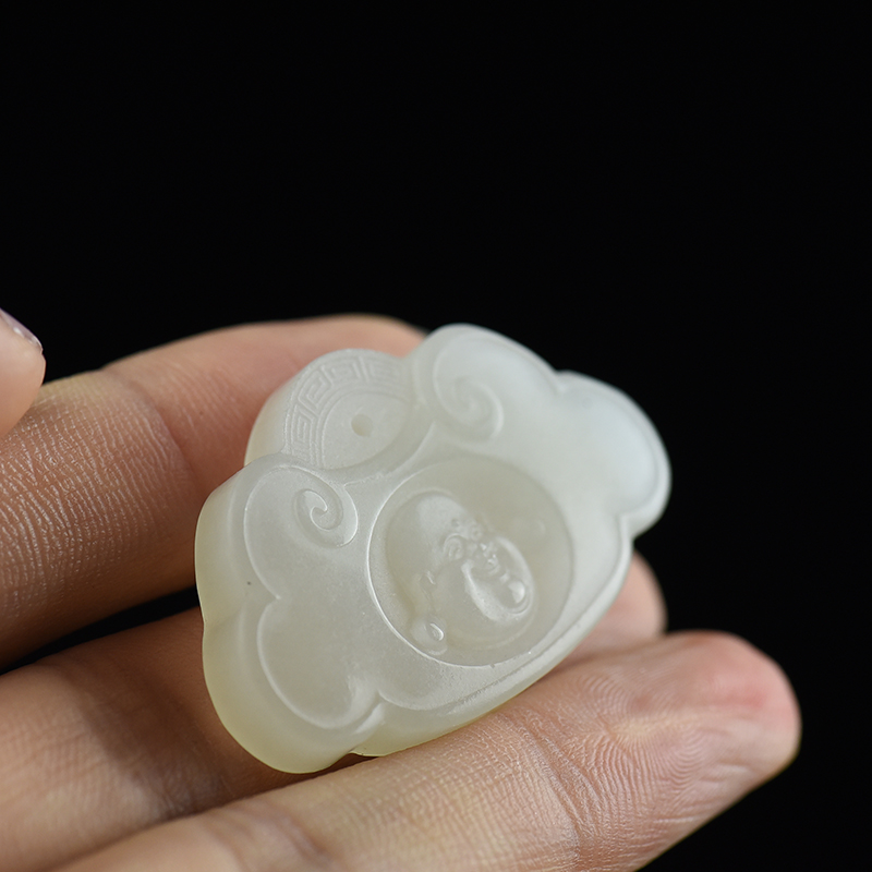 • [名  称] 山料和田白玉弥勒佛平安锁吊坠