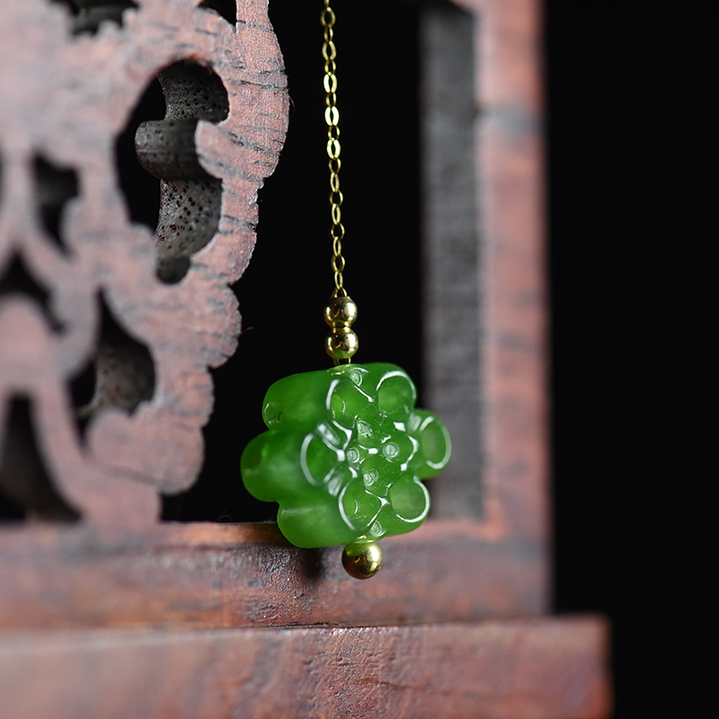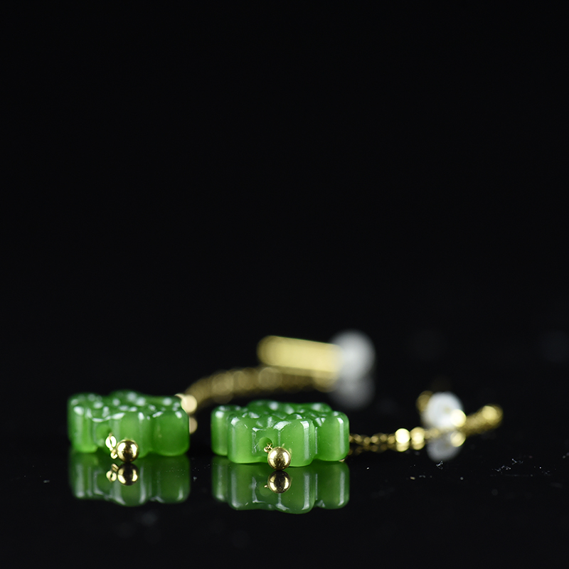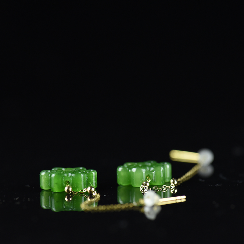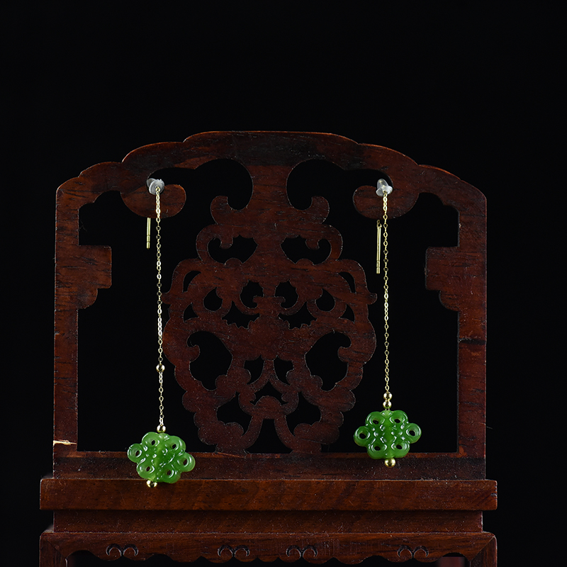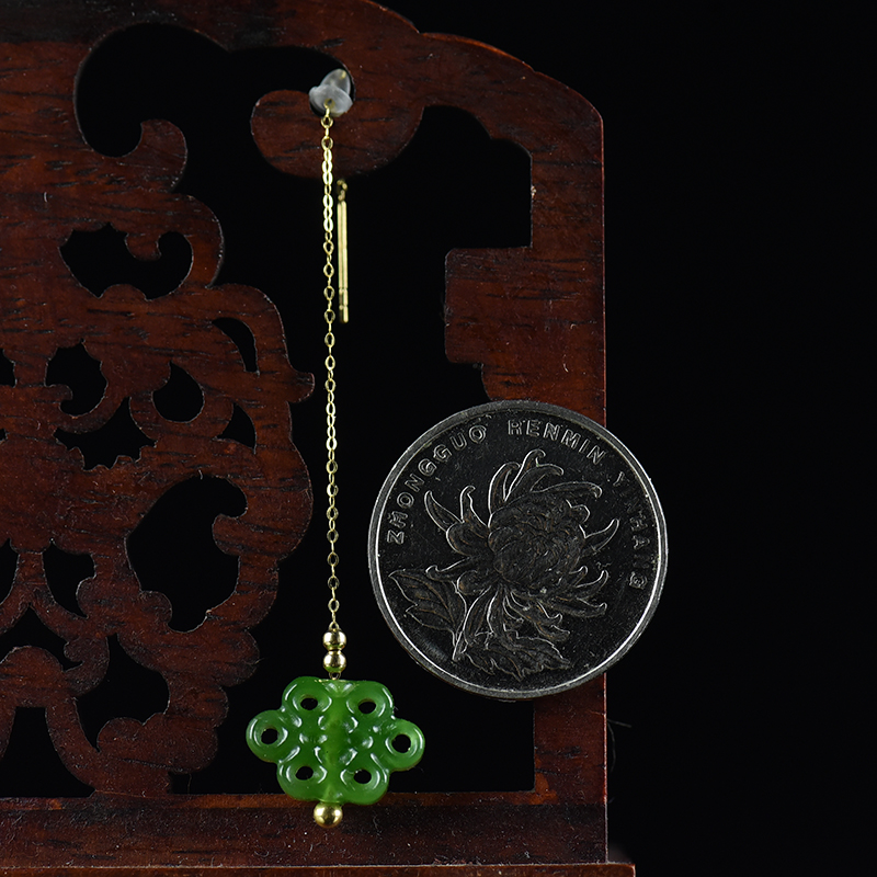 • [名  称] 18k金镶山料和田碧玉中国结耳坠