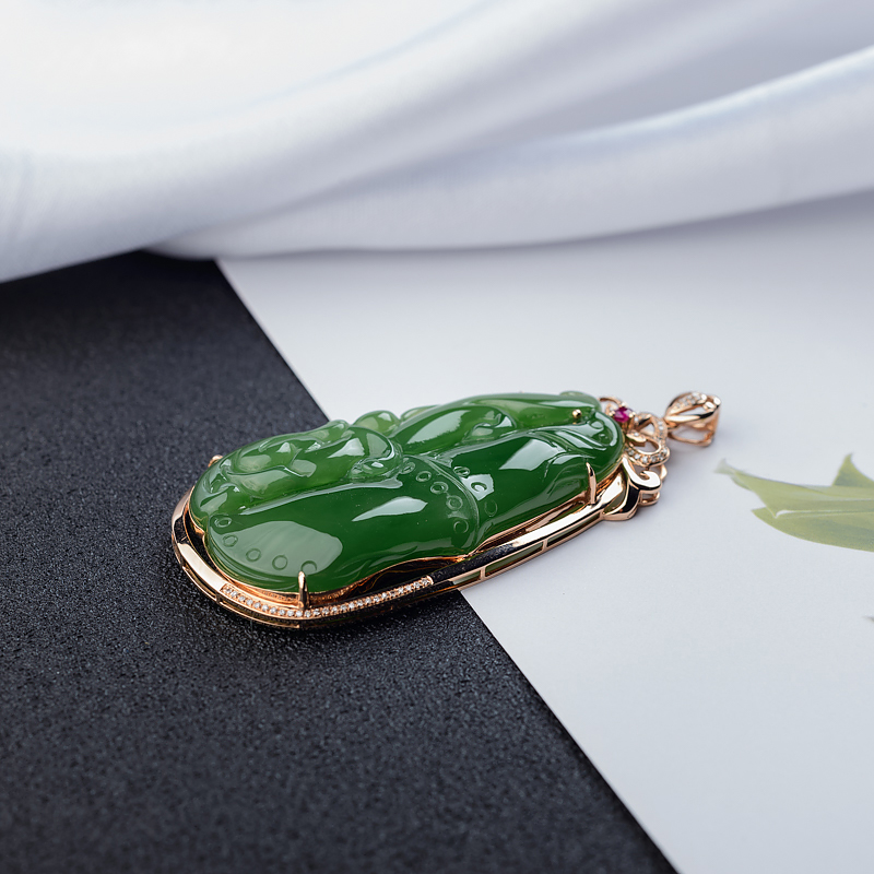 • 18K山料和田碧玉竹节吊坠