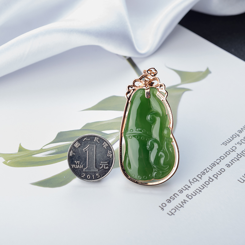 • [名  称] 18K山料和田碧玉竹节吊坠