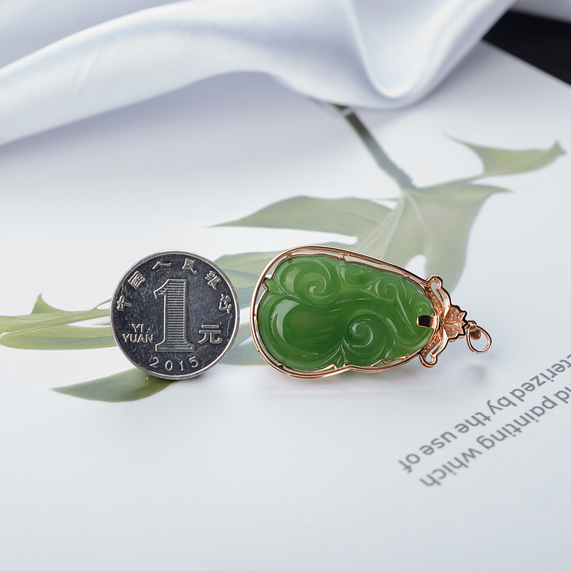 • [名  称] 18K山料和田碧玉如意吊坠
