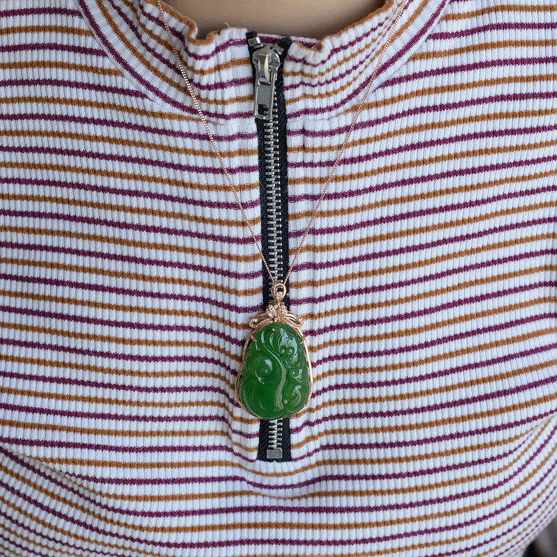 • 18K山料和田碧玉如意吊坠